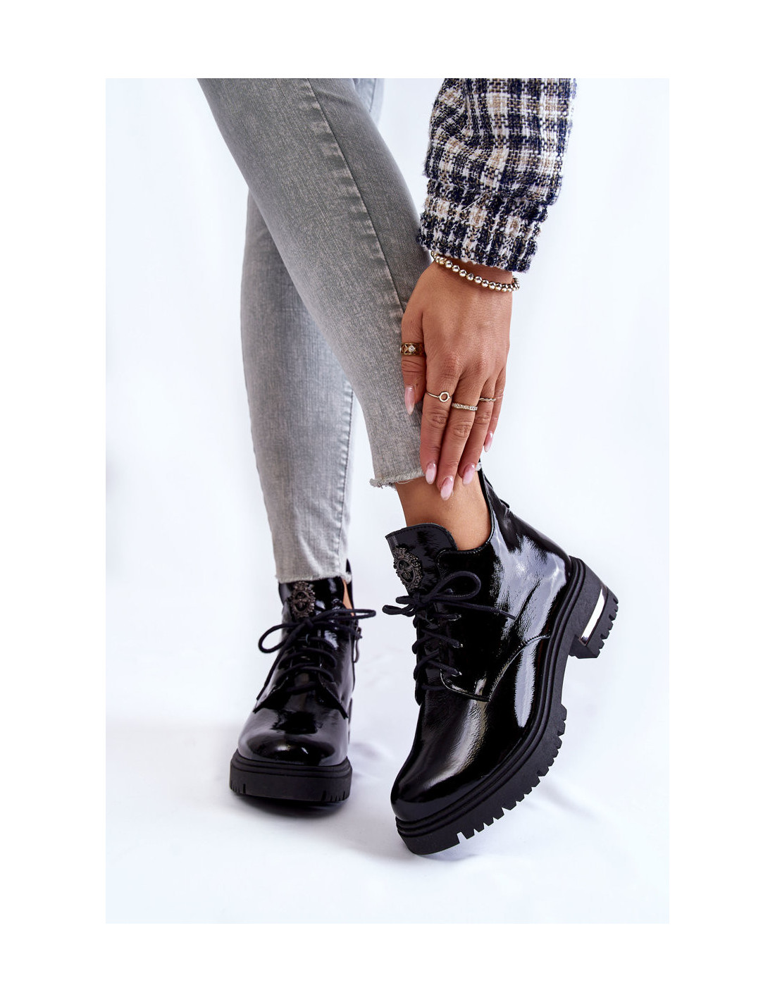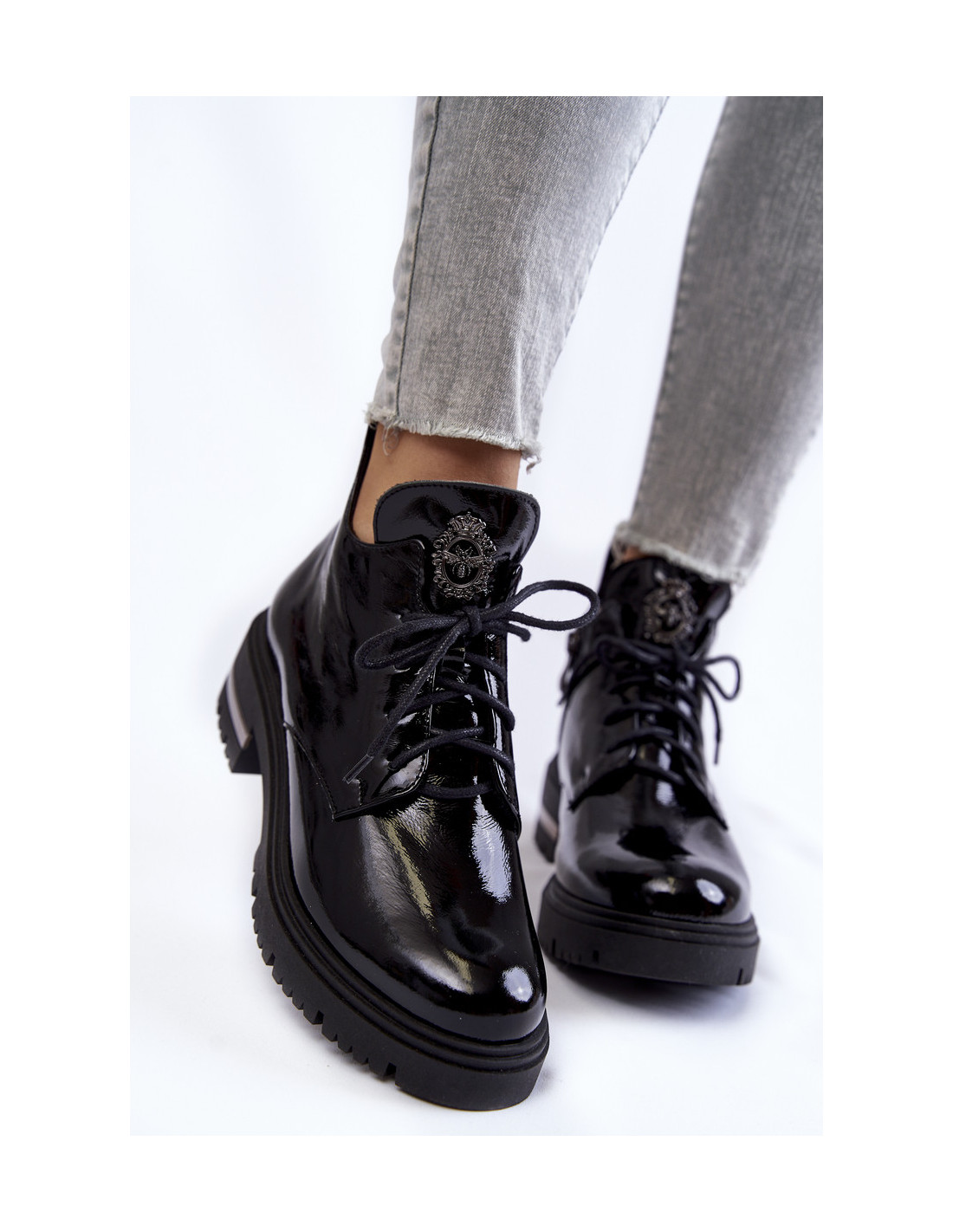Lakuoti moteriški batai ant plokščio kulno