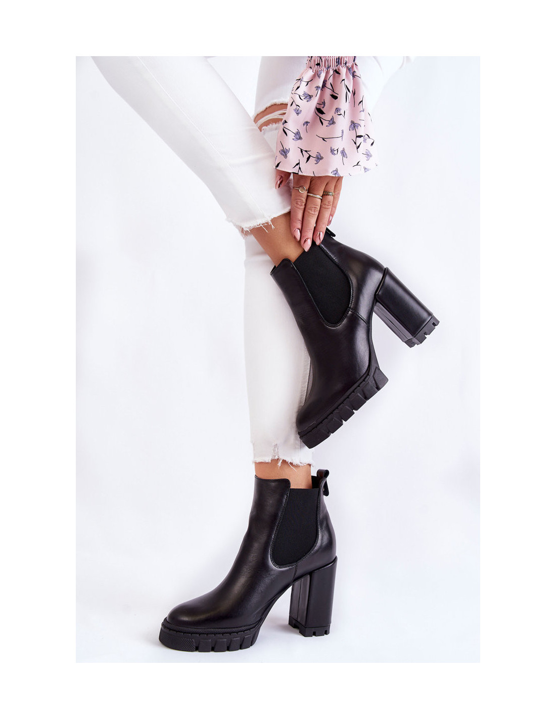 Unikalūs moteriški batai yra pagaminti iš aukštos kokybės odos. Trappers stiliaus modelis su masyvios stulpelio formos kulnu. Batai papildomai turi platformą su grioveliais. Kulno skaitiklis yra standus. Vidus apšiltintas batų antklode. Puikus kirpimas rudeniui, šaltoms dienoms. Būtinai peržiūrėkite ir kitus mūsų pasiūlyme esančius batų modelius. Renkantis dydį, naudokite dydžių lentelę.