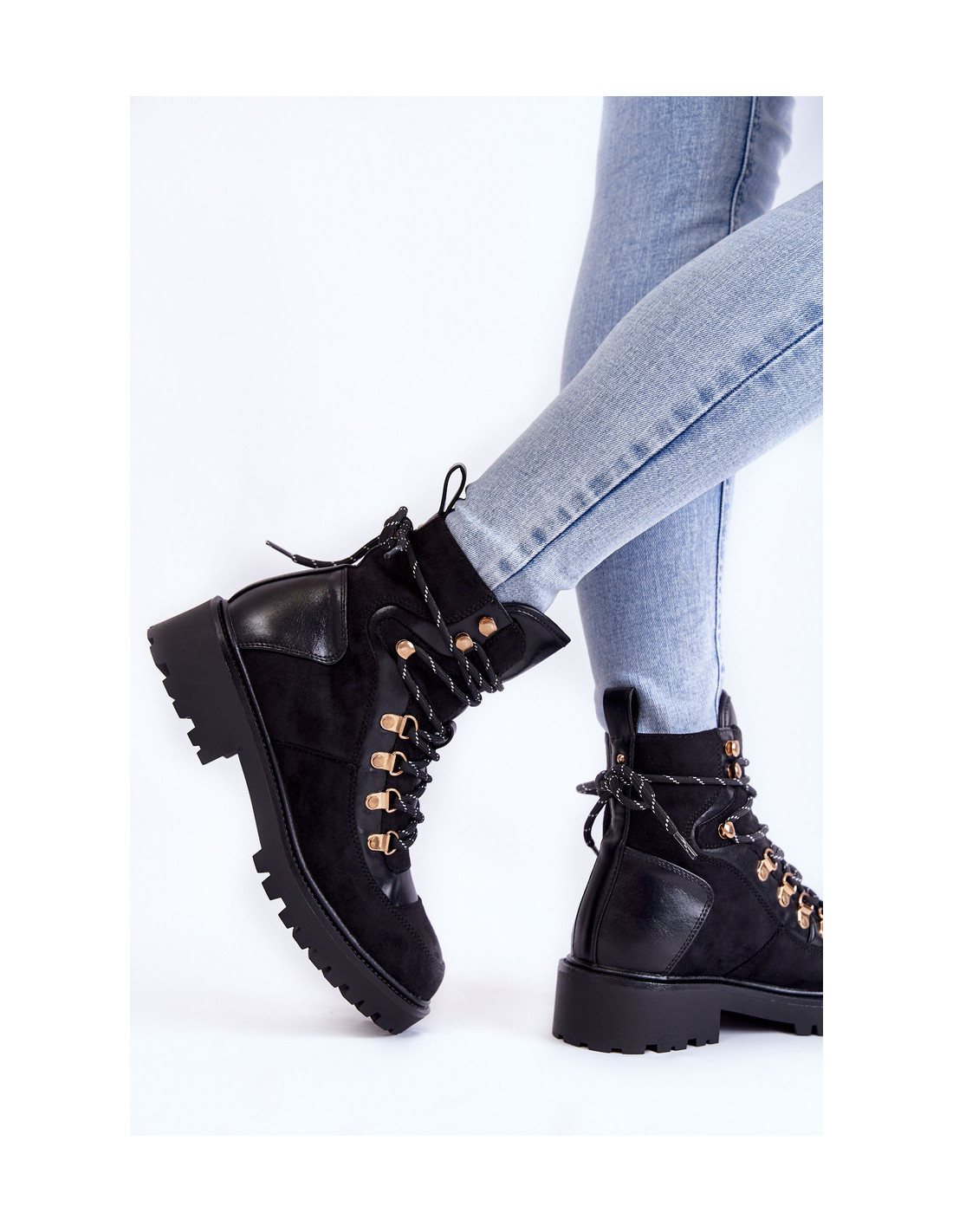 Unikalūs trappers stiliaus batai puikiai tiks rudens dienoms! Šis modelis turi tvirtą suvarstymą ir standų kulno atlošą, kuris užtikrins tinkamą pėdos stabilizavimą. Pagaminta iš eko odos medžiagų derinio. Batai montuojami ant plokščio kulno ir platformos su grioveliais. Vidus apšiltintas maloniu liesti, trumpu kailiuku. Renkantis dydį, naudokite dydžių lentelę.