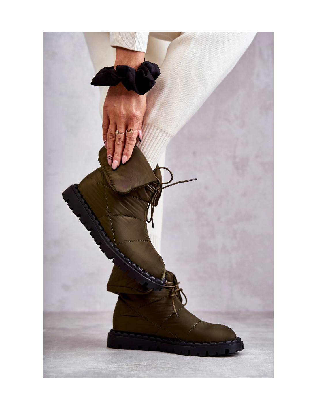 Moteriški batai iš tekstilės su siūlėmis. Modelis su susukamu kulkšnies viršumi. Šie batai yra suvarstomi. Jie montuojami ant platformos su grioveliais iš guminės medžiagos. Be to, jie yra neslidūs. Vidus apšiltintas batų antklode. Puikiai tiks šaltoms ir vėjuotoms dienoms! Renkantis dydį, naudokite dydžių lentelę.