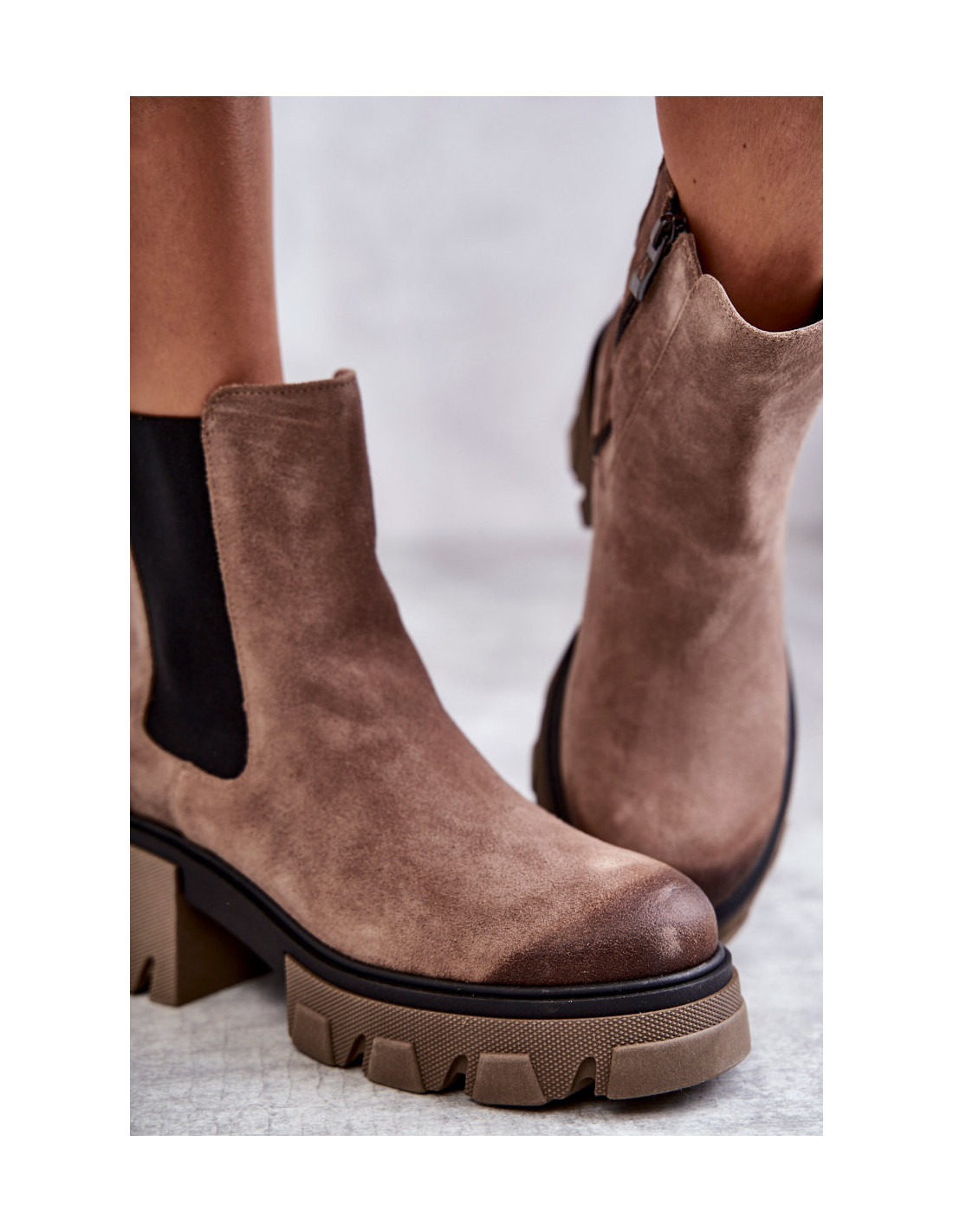 Batai ant masyvios platformos su plačiu „Chelsea“ batų stiliaus kulnu. Jie turi aukštą viršutinę dalį, siekiančią virš kulkšnies. Pagaminta iš natūralios odos. Juose yra papildomas lankstus įdėklas, kurio dėka viršutinė dalis puikiai atitiks kojos plotį. Batai buvo izoliuoti batų antklode. Batai puikiai tinka rudens stilizacijai. Renkantis dydį, naudokite dydžių lentelę