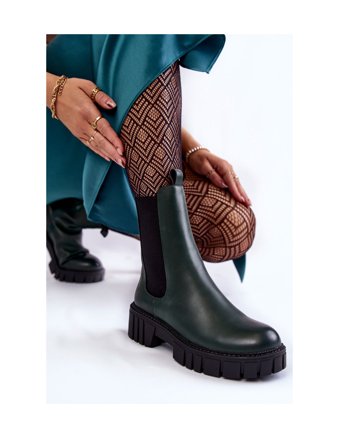 Batai ant masyvios platformos su plačiu „Chelsea“ batų stiliaus kulnu. Jie turi aukštą viršutinę dalį, siekiančią virš kulkšnies. Pagaminta iš ekologiškos odos. Juose yra papildomas lankstus įdėklas, kurio dėka viršutinė dalis puikiai atitiks kojos plotį. Batai buvo izoliuoti batų antklode. Batai puikiai tinka rudens stilizacijai. Renkantis dydį, naudokite dydžių lentelę