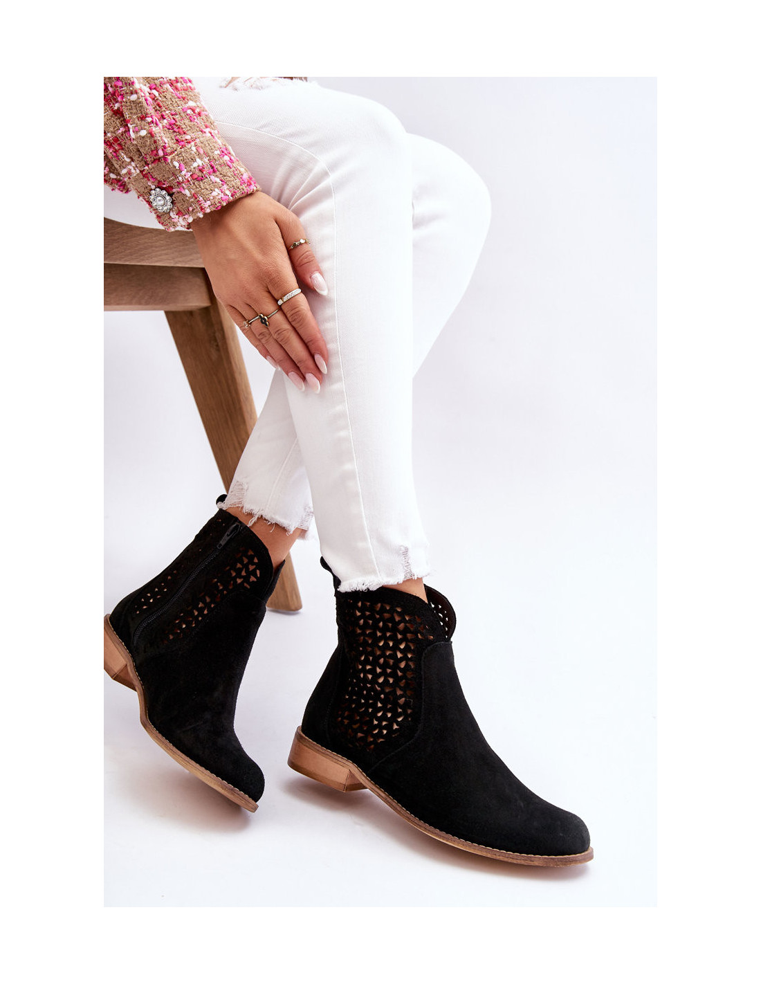 Batai pagaminti iš natūralios zomšos. Apsivilkti palengvins šone įsiūtas užtrauktukas. Batai turi ažūrinį raštą. Jie turi plokščią kulną ir patogų vidpadį iš natūralios odos. Šis itin patogus modelis turi būti jūsų garderobe! Rinkdamiesi dydį, žiūrėkite dydžių lentelę.
