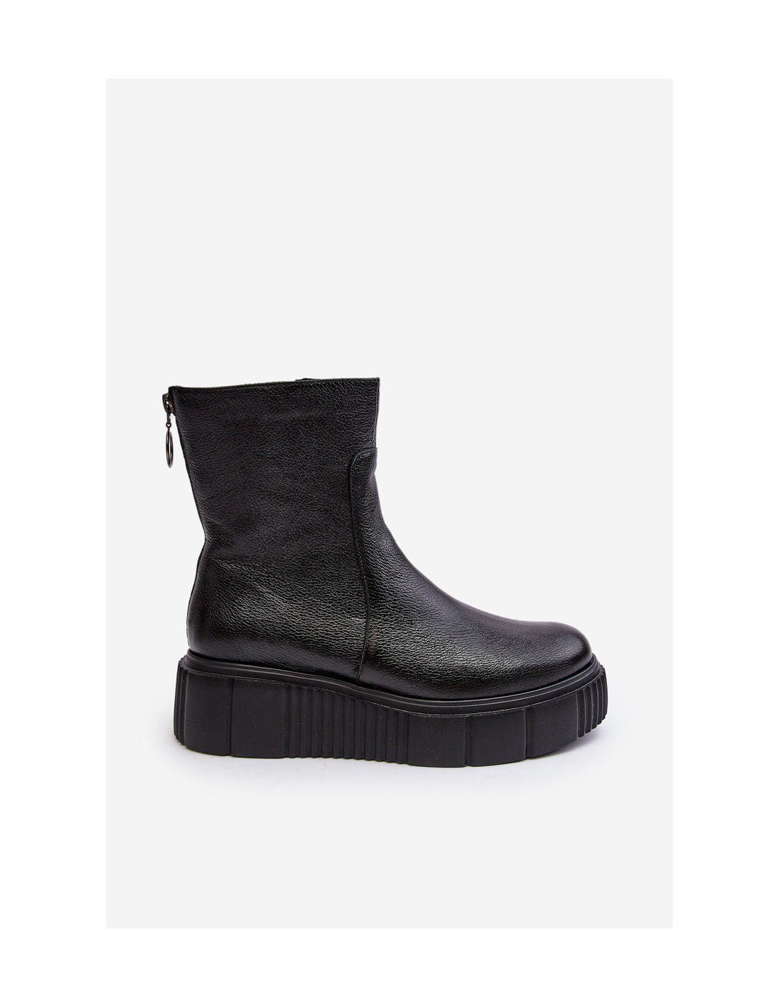 Moteriški batai yra pagaminti iš aukštos kokybės natūralios odos. Pastatykite ant masyvios platformos su subtiliu pleištu. Viršus šone užsegamas užtrauktuku, o nugaroje esantis užtrauktukas dekoratyvus. Be to, batai turi standintą kulną. Apšiltintas vidus su antklode. Šis modelis tikrai pasiteisins daugelyje rudens stilizacijų! Renkantis dydį, naudokite dydžių lentelę