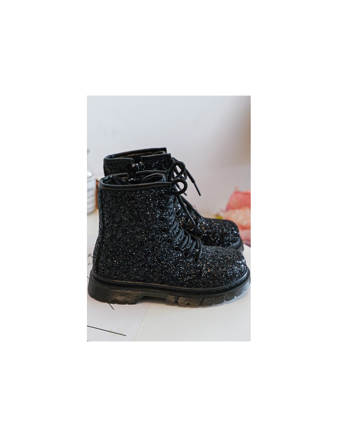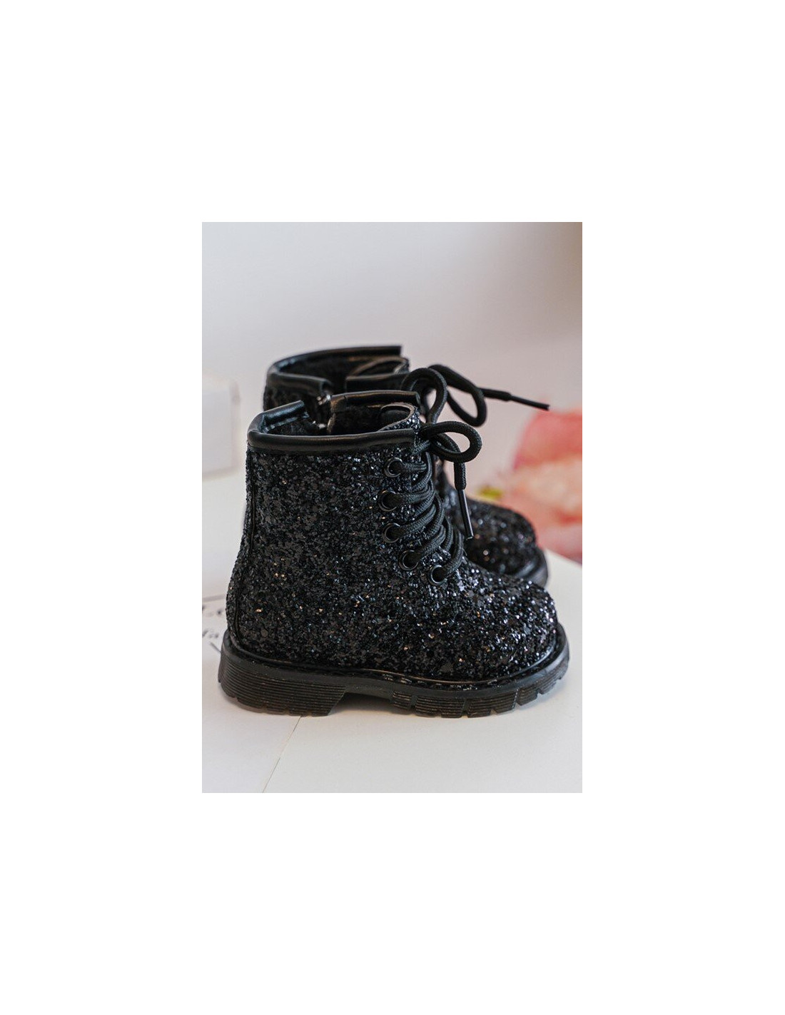 Blizgantys vaikiški batai su užtrauktuku Black...