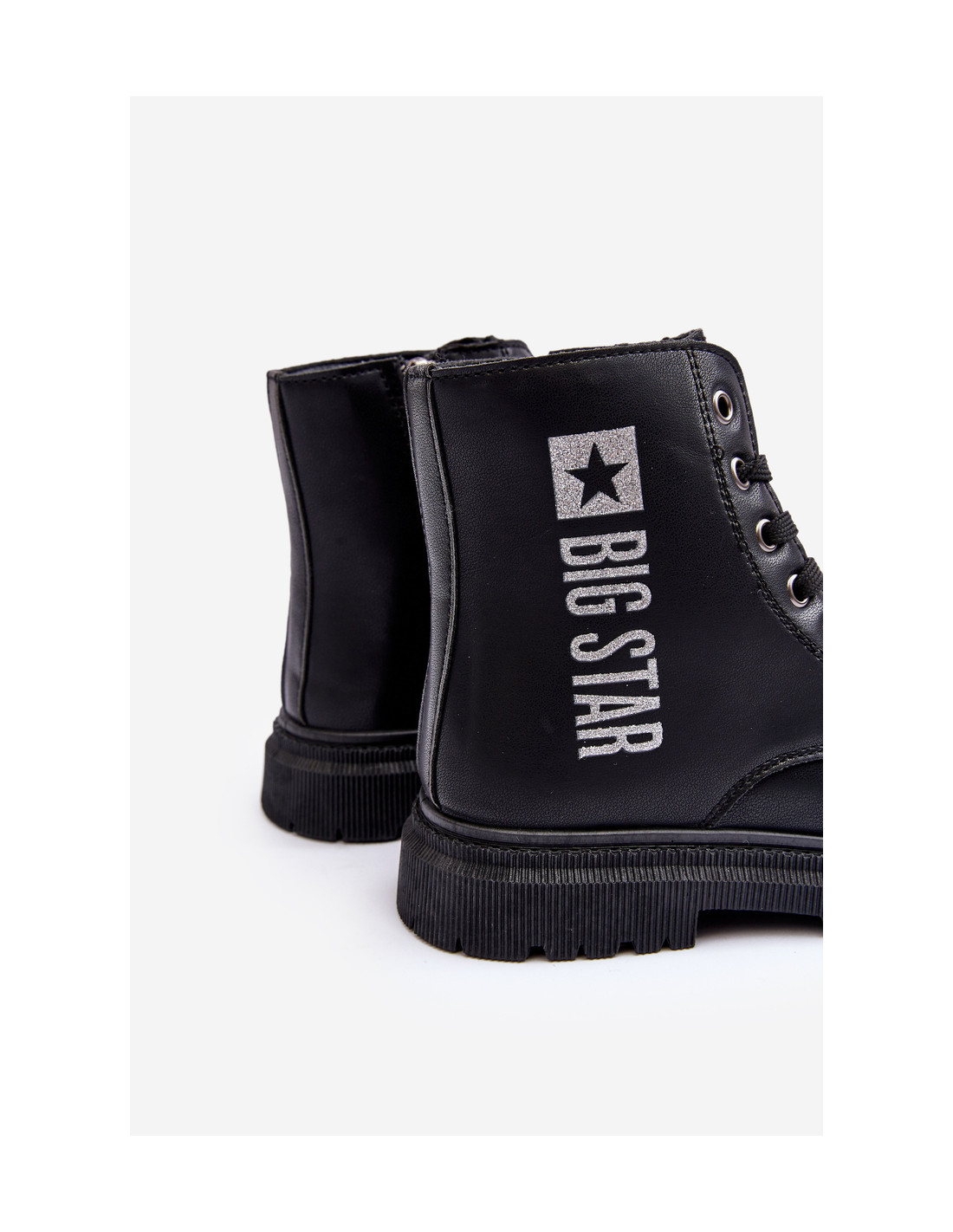 Big Star prekės ženklo vaikiški batai. Pagaminta iš eko odos. Statomas ant plokščio, stabilaus kulno. Vidus apšiltintas batų antklode. Modelis šone užsegamas užtrauktuku ir papildomai suvarstomas. Viršuje yra didelis Big Star logotipas. Minkštas vidpadis užtikrina patogų batų naudojimą. Renkantis dydį, vadovaukitės dydžių lentele.