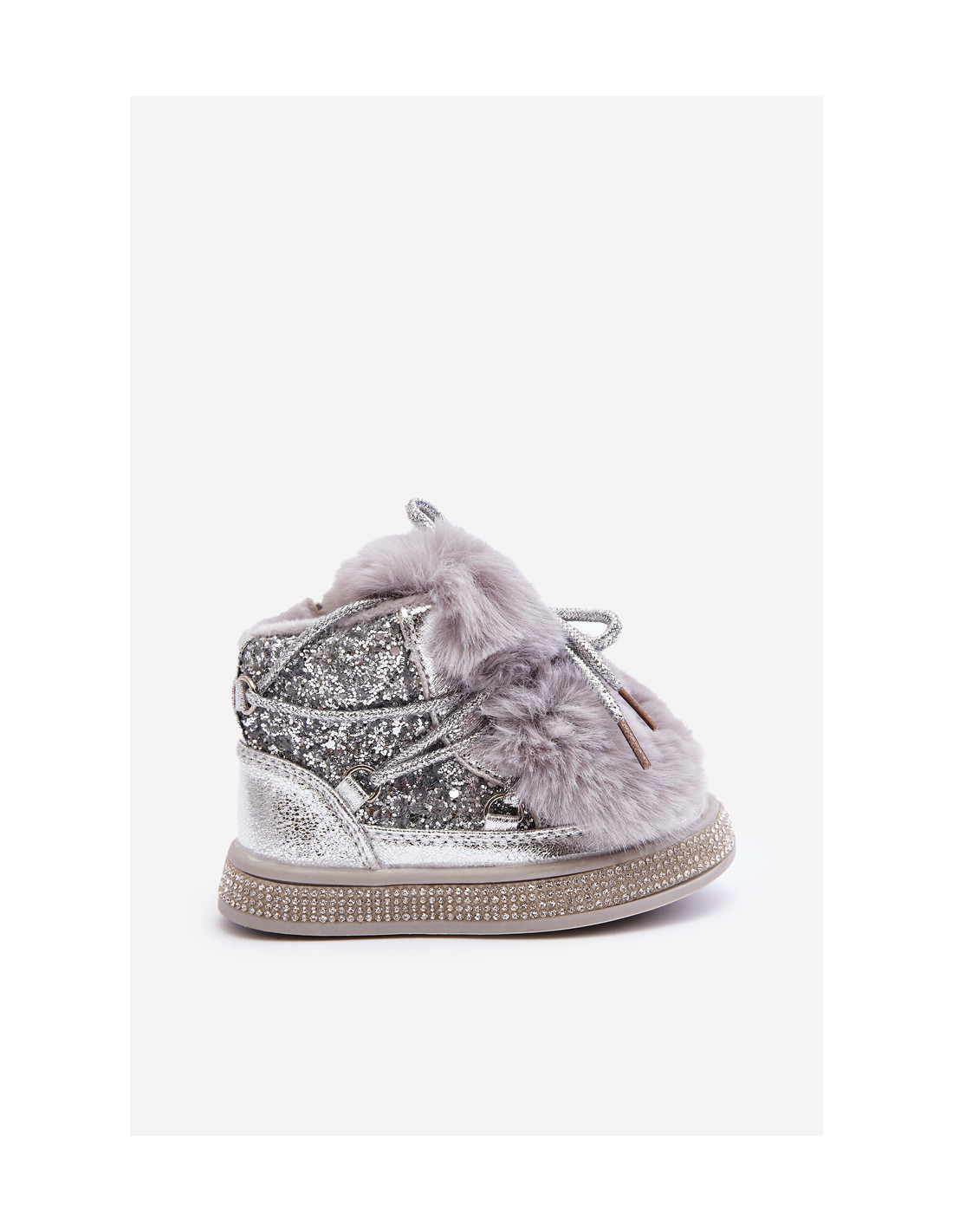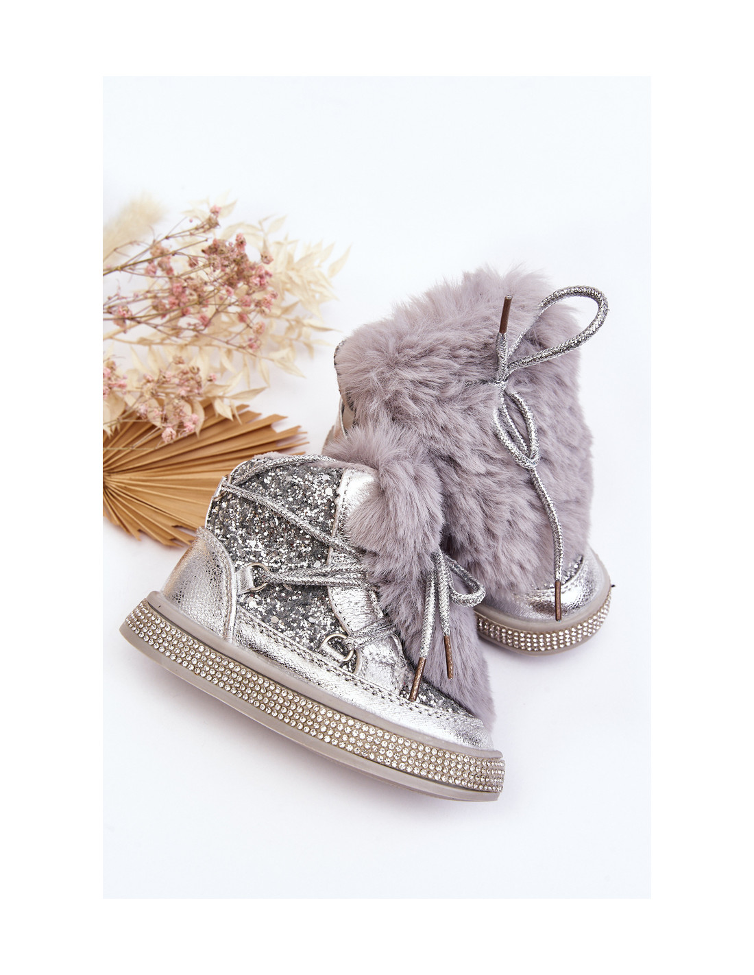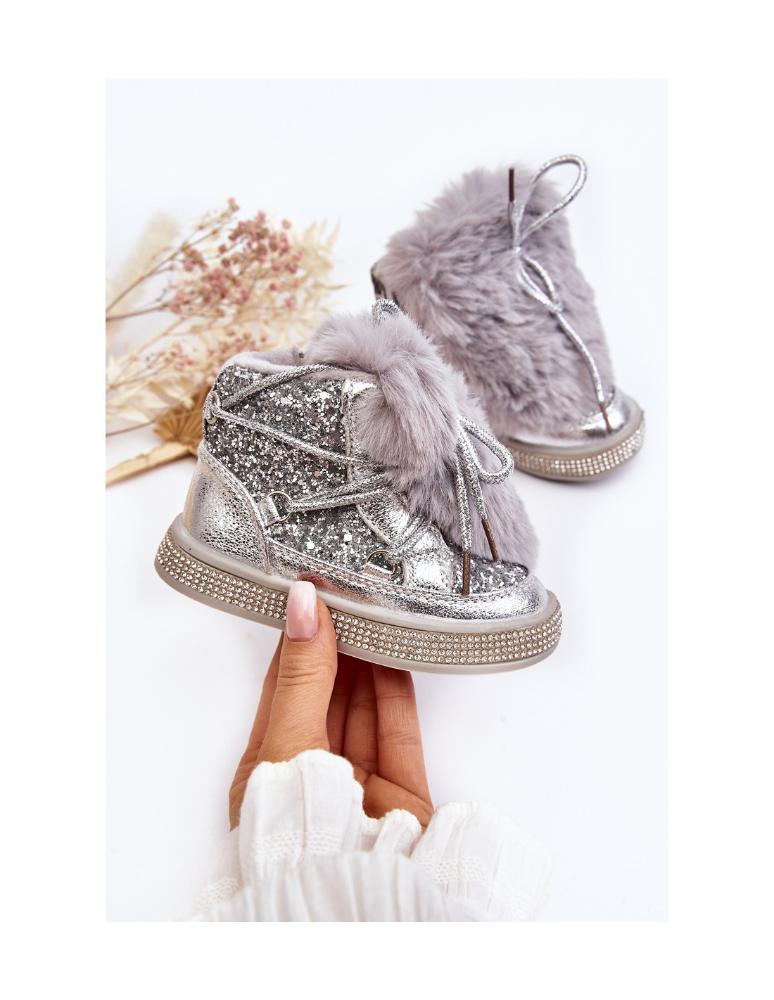 Vaikiški sniego batai su kailiu ir blizgučiais, sidabriniai Bryana
