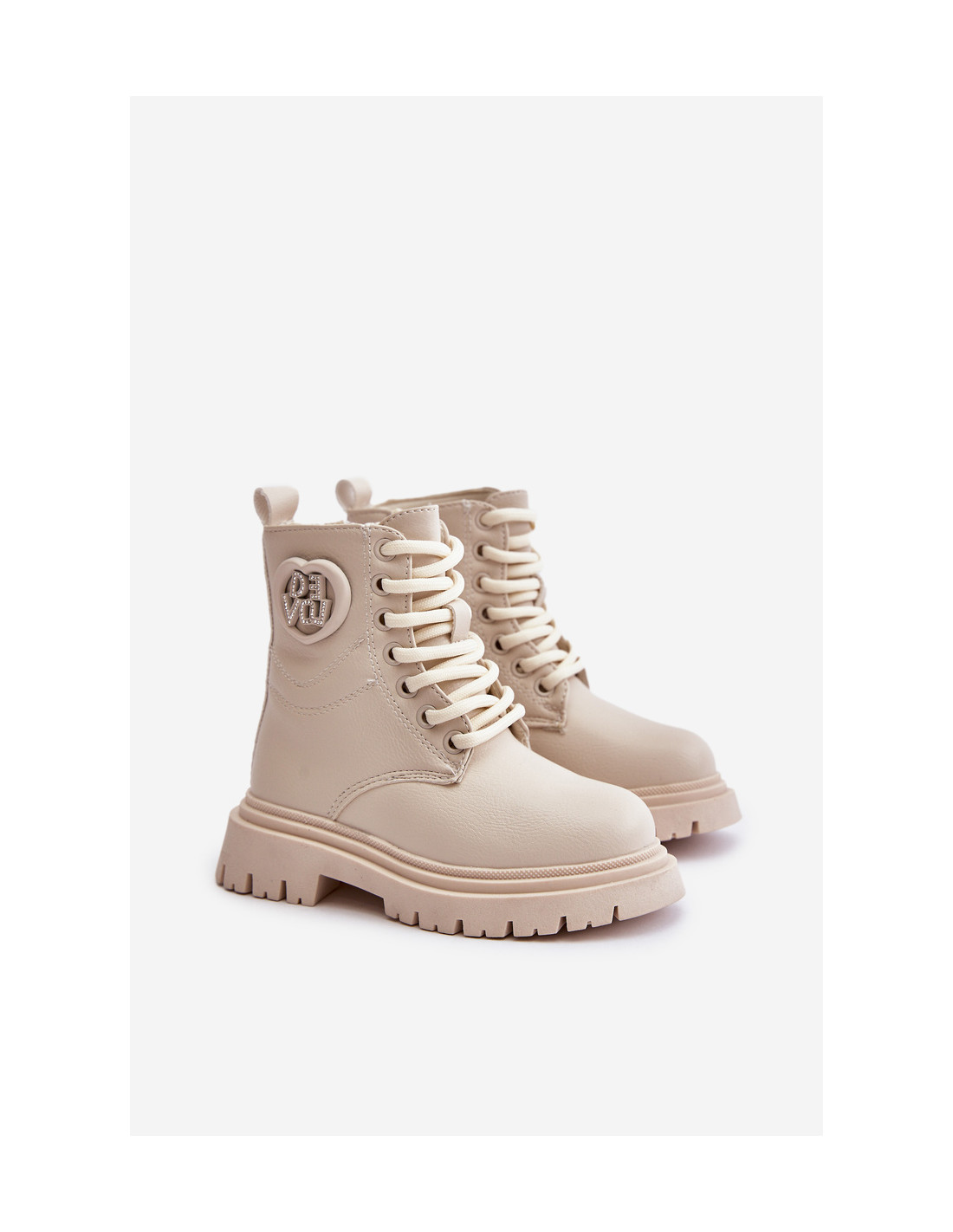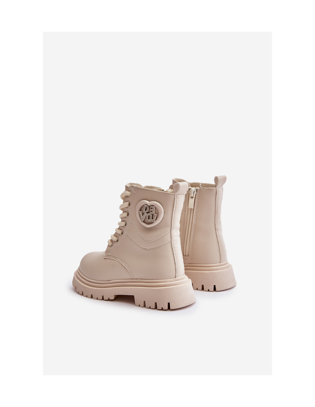 Smėlio spalvos Evaliraea batai mergaitėms su kailiniu pamušalu ir užtrauktuku