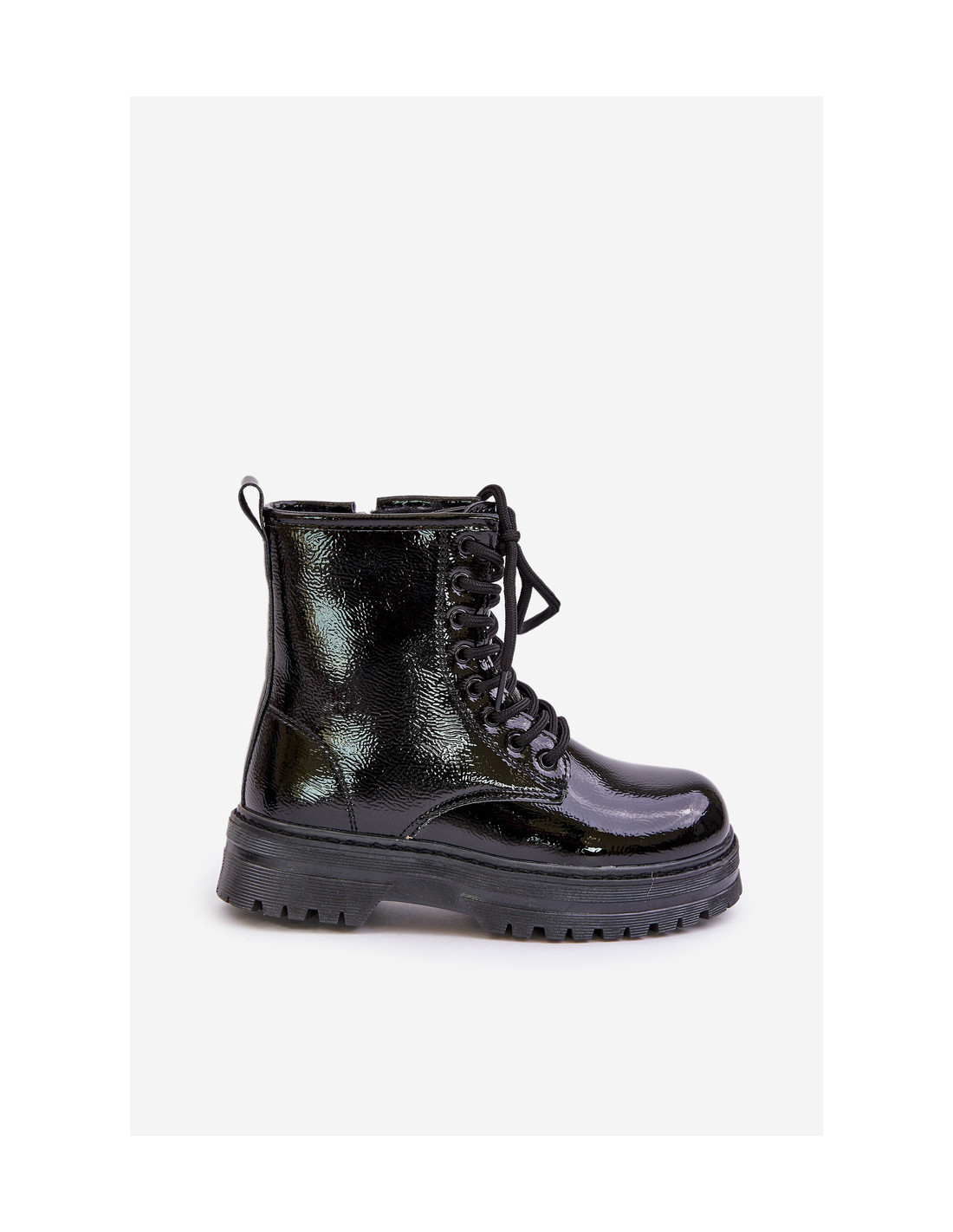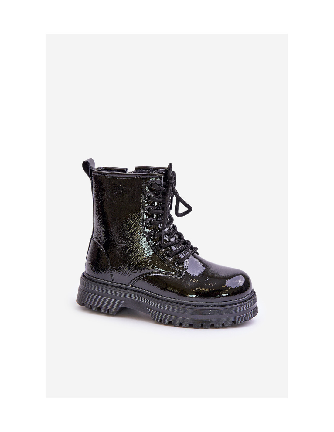 Apšiltintos lakinės odos batai su užtrauktuku, juodi Novita