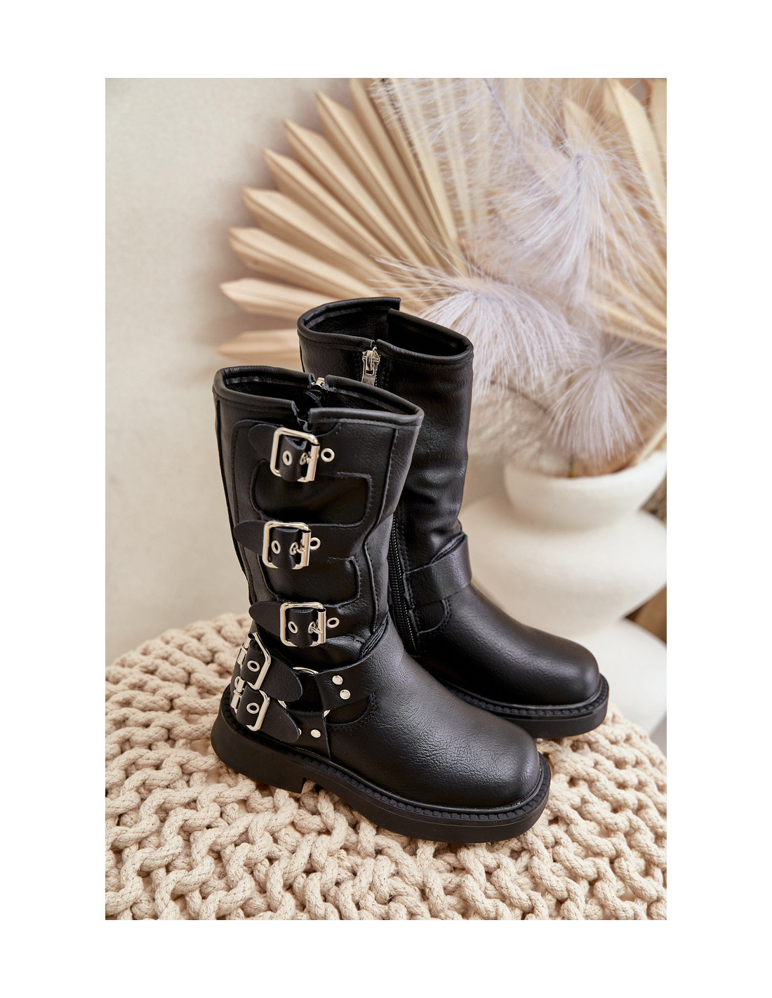 Stilingi mergaitiški batai iš eko odos – puikus pasirinkimas šaltesnėms dienoms. Modelis išsiskiria plačiais, užapvalintais pirštais, užtikrinančiais komfortą dėvint. Pagrindinė puošmena – viršutinė dalis su dekoratyvinėmis sagtimis, suteikiančia visumai unikalumo. Batai užsegami užtrauktuku, todėl juos lengva apsiauti ir greitai prisitaikyti. Puikiai tinka madingiems vaikų stiliams papildyti! Renkantis dydį, vadovaukitės dydžių lentele.