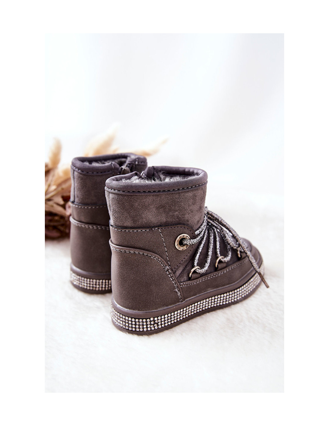 Šie madingi sniego batai puikiai tiks šaltomis dienomis! Sniego batai apšiltinti ekologišku kailiu. Jie turi dekoratyvinį kaklaraištį ir užtrauktuką. Cirkonai ant pado. Viršuje pagaminta iš eko odos. Nepraleiskite tokios progos ir pasirūpinkite savo vaiko šiluma bei komfortu nusipirkę šiuos sniego batus! Rinkdamiesi dydį vadovaukitės dydžių lentele.