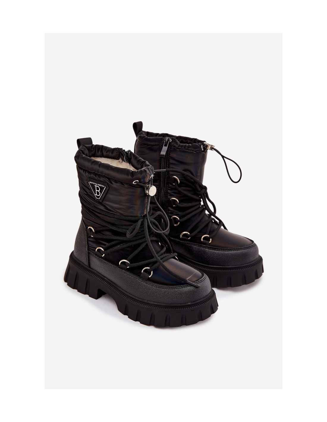 Vaikiški sniego batai – tobula avalynė žiemos dienoms, sukurta galvojant apie mažylių šilumą ir komfortą. Pagaminti iš patvarios, vėjui ir šalčiui atsparios medžiagos, jie efektyviai apsaugo pėdas nuo šalčio ir drėgmės. Jie turi užtrauktuką, kad būtų lengva apsiauti, o papildomi raišteliai ir raištelis batų viršuje leidžia reguliuoti prigludimą, neleidžiant sniegui patekti į vidų. Vidus išklotas storu, minkštu kailiu, kad būtų užtikrinta maksimali šiluma ir komfortas net ir ilgų žiemos nuotykių lauke metu. Šie praktiški ir šilti sniego batai puikiai tinka visoms žiemos sąlygoms. Rinkdamiesi dydį, vadovaukitės dydžių lentele.