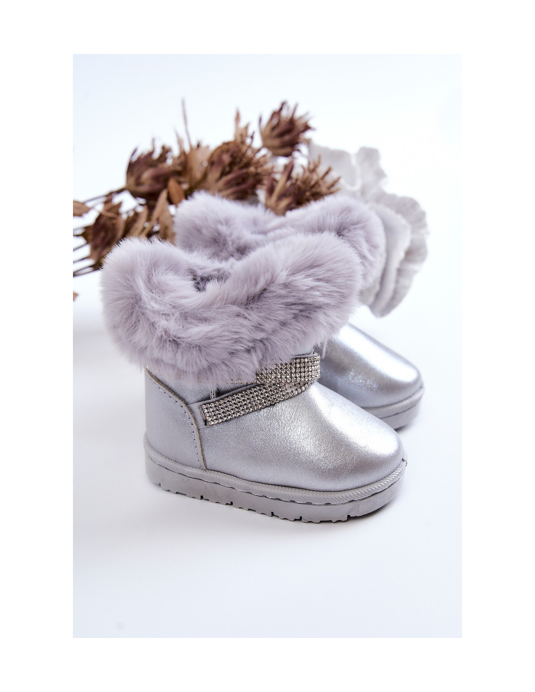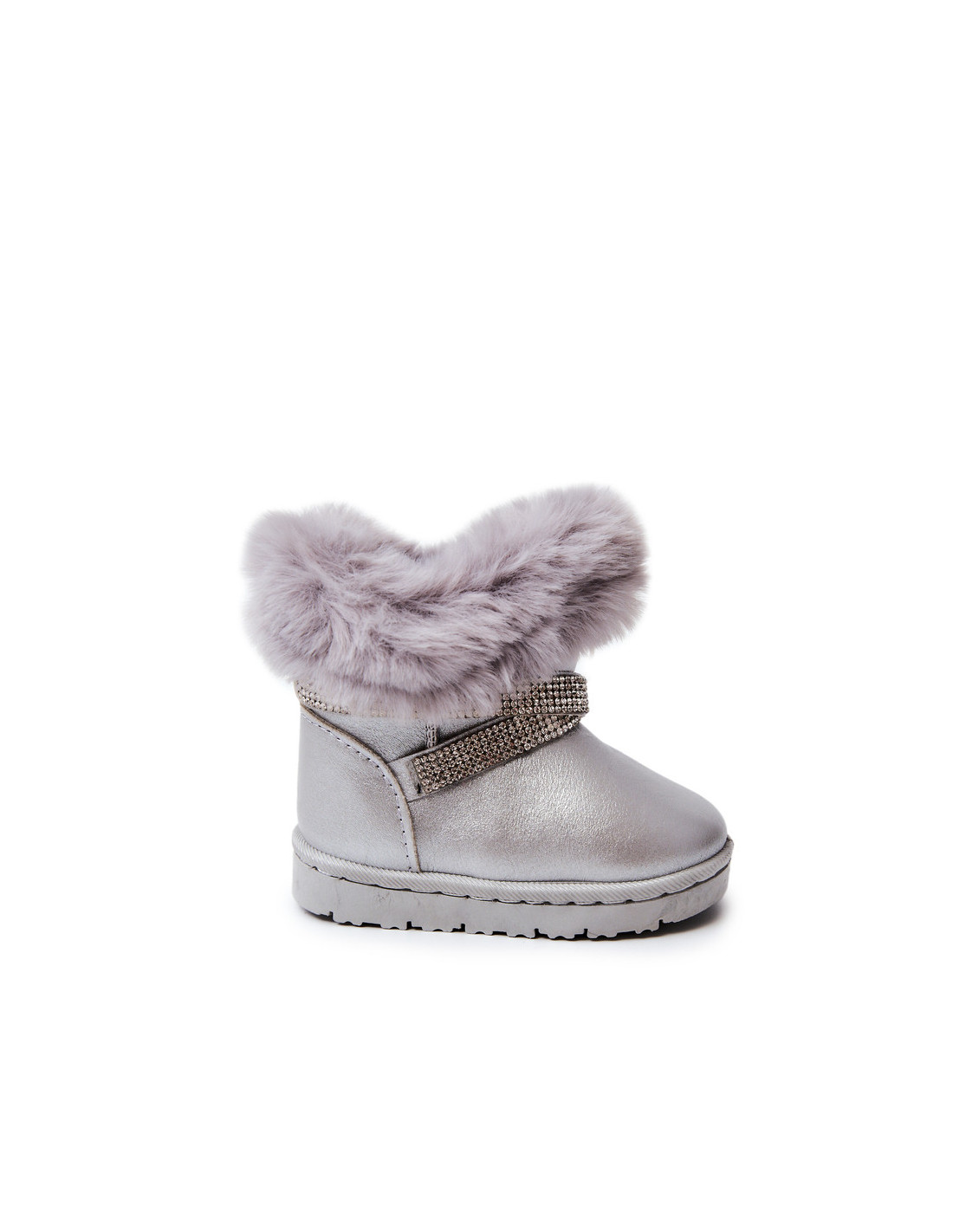 Šaltomis dienomis verta pasirūpinti šilta avalyne vaikams. Šie madingi sniego batai yra puikus pasiūlymas tokioms dienoms! Izoliuoti batai yra malonūs liesti ekologiško kailio. Slip-on modelis. Viršuje yra dekoratyviniai kalnų krištolai. Būtinai peržiūrėkite visą mūsų vaikiškų sniego batų kolekciją! Renkantis dydį, naudokite dydžių lentelę.