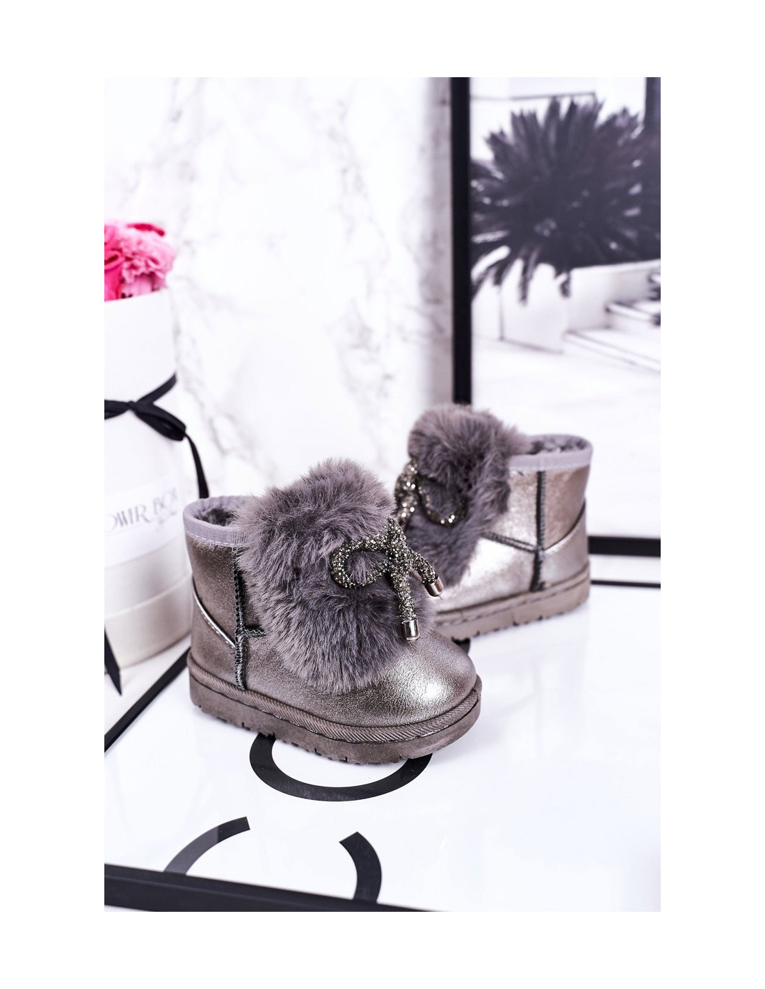 Vaikiški sniego batai, izoliuoti kailiu tamsiai pilka Aurora