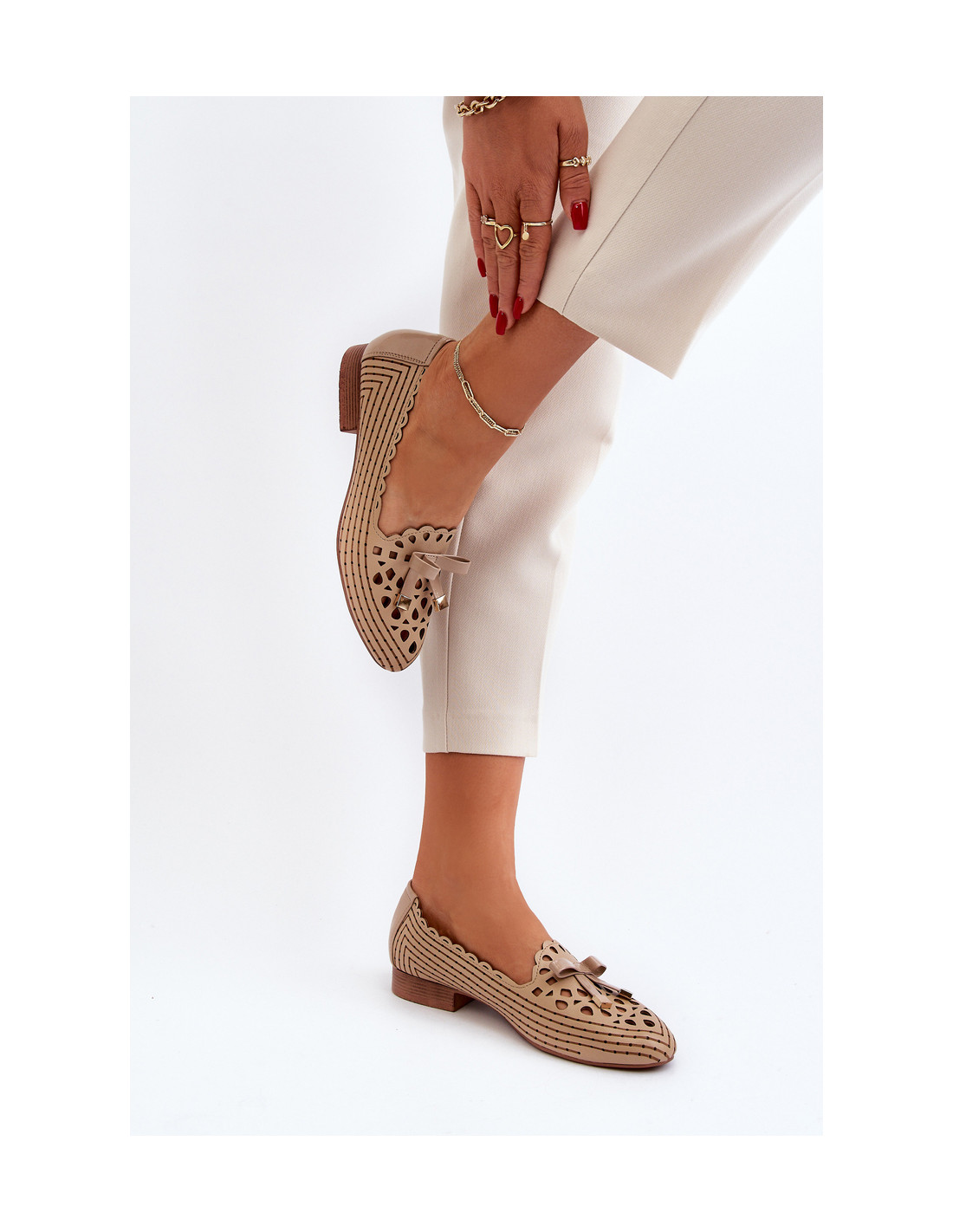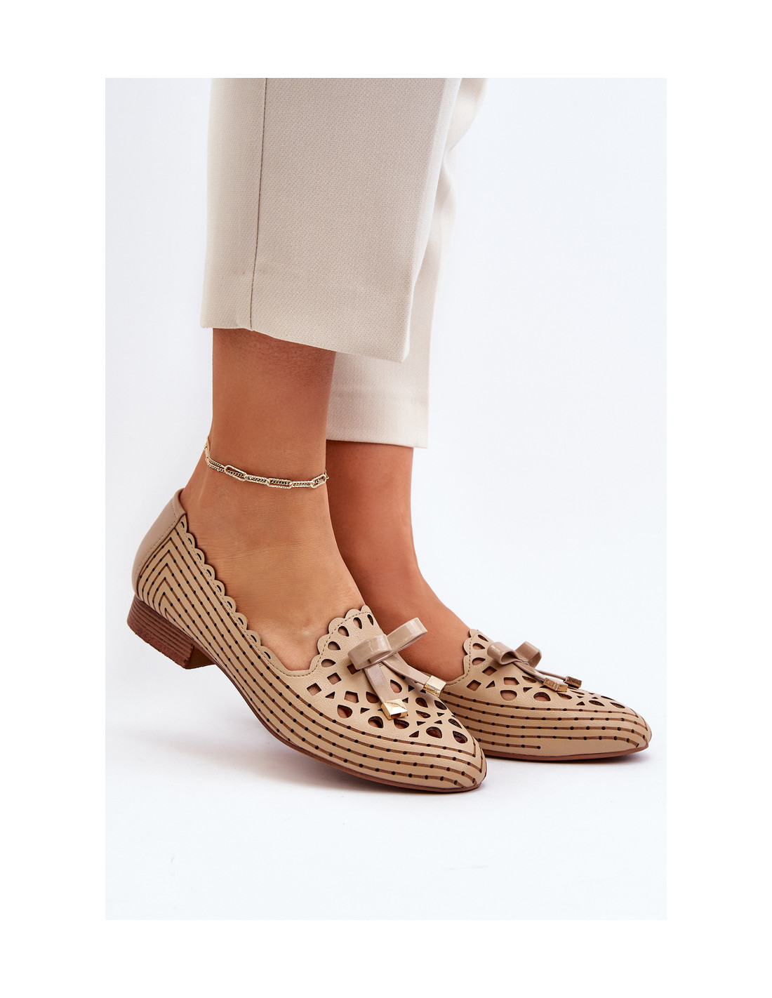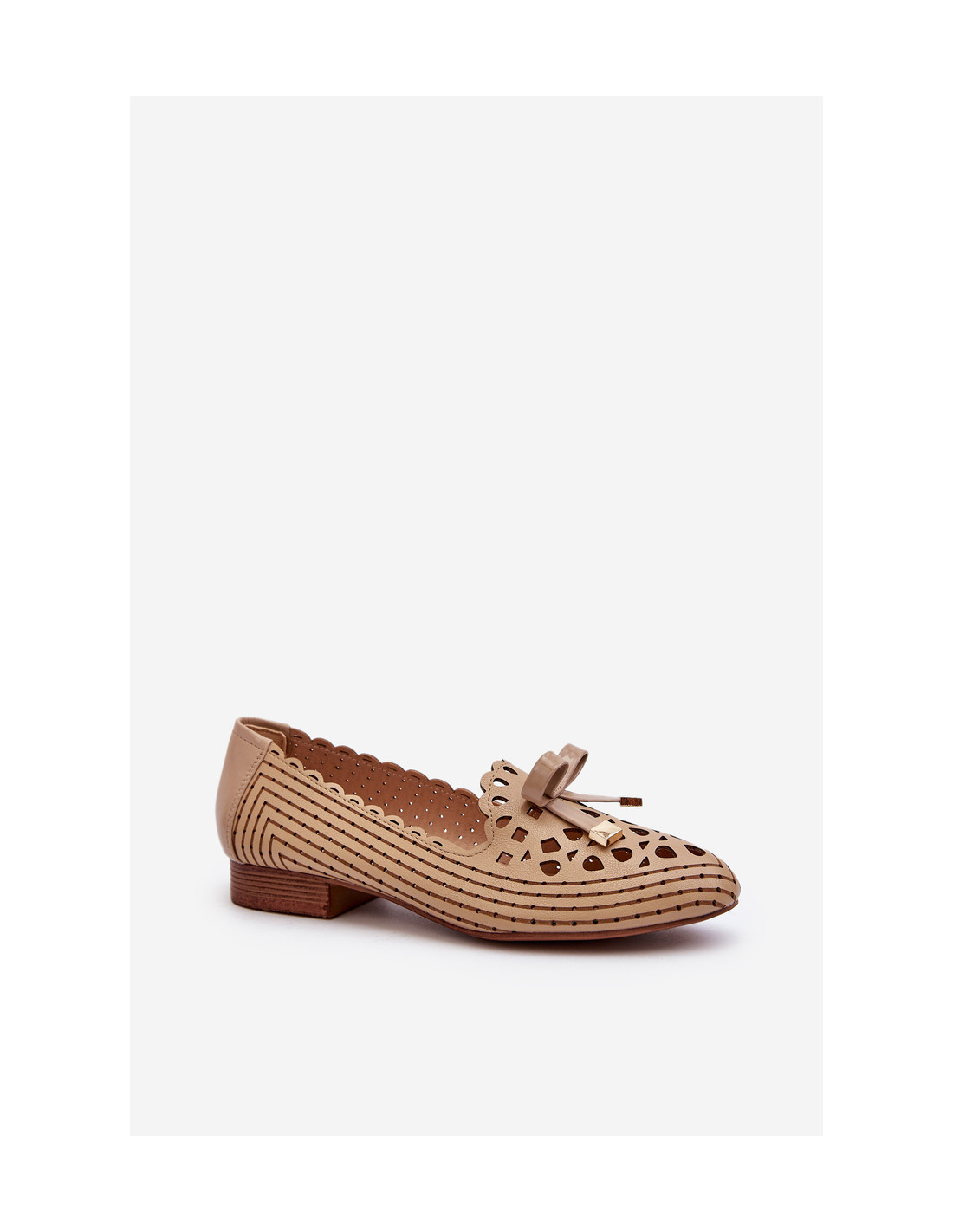 Smėlio spalvos moteriškos ažūrinės balerinos su lankeliu Nestavia