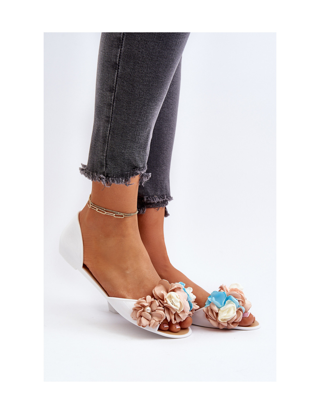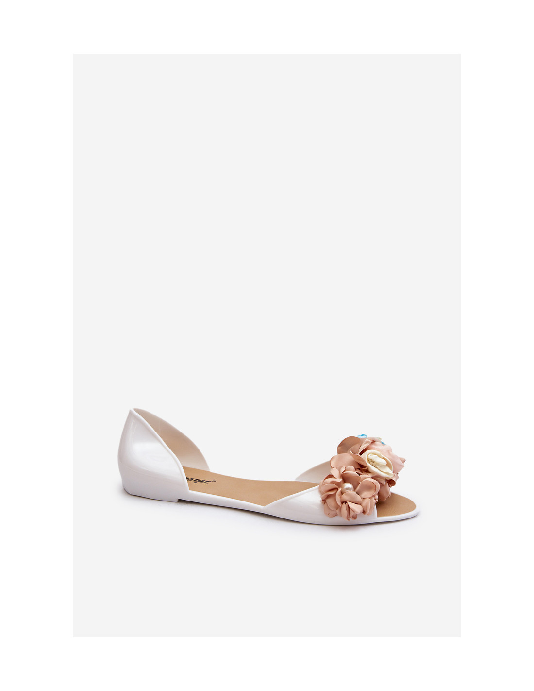 Moteriškos guminės balerinos su gėlėmis, balta Junikla