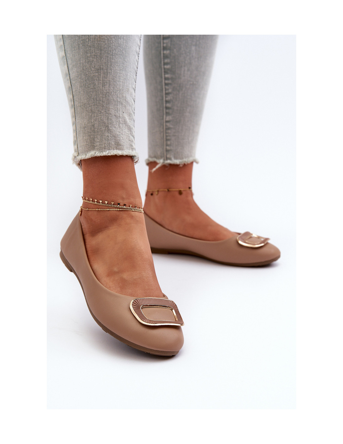 Ekologinės odos baleto butai su apdaila, tamsiai smėlio spalvos Enicoria