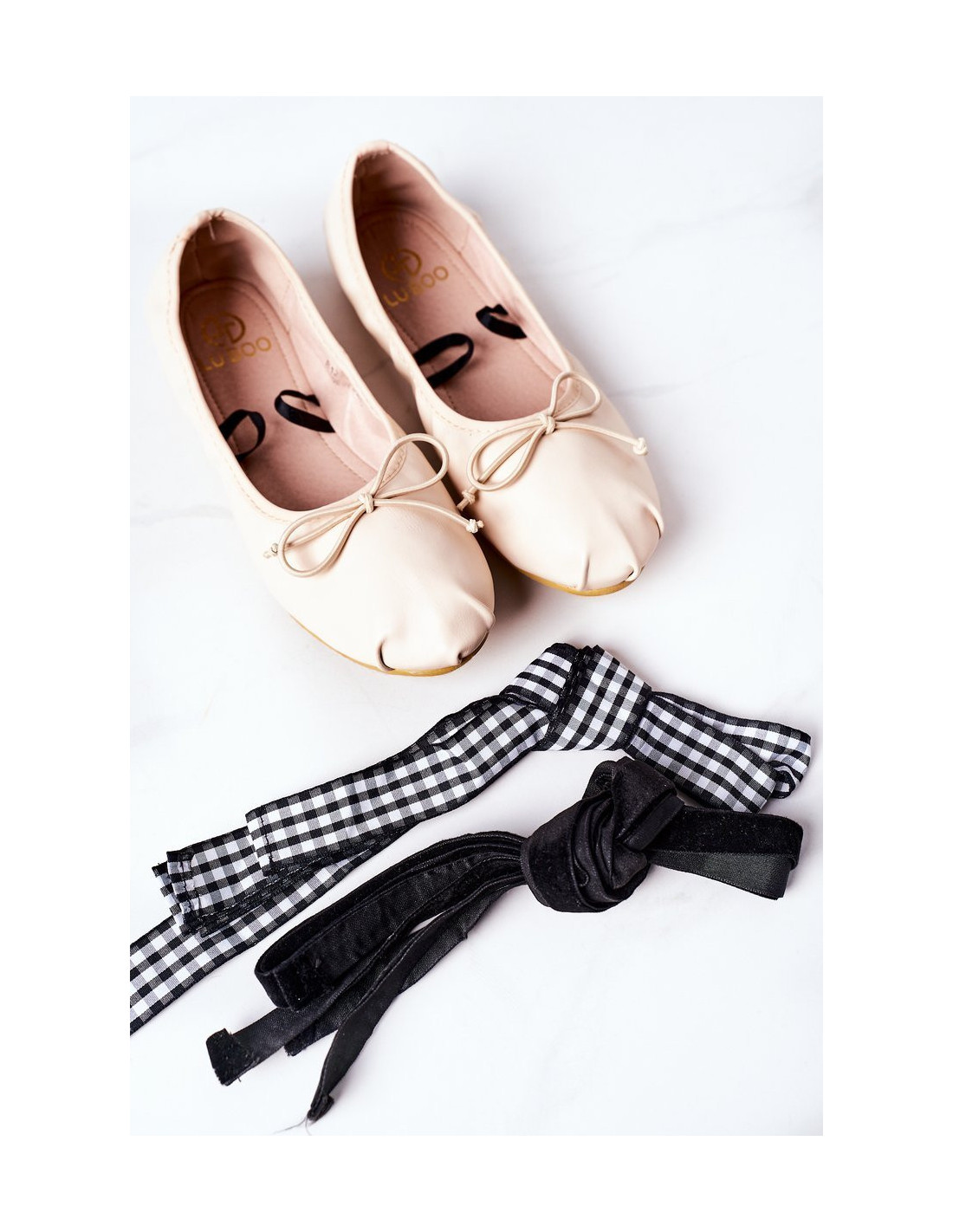 Subtilios ir moteriškos Lu Boo balerinos. Batai pagaminti iš eko odos. Elastinė juosta aplink viršutinę dalį užtikrins prigludimą prie pėdos. Rinkdamiesi dydį vadovaukitės dydžių lentele. Balerinos rinkinyje turi dviejų tipų juosteles: paprastas ir languotas.