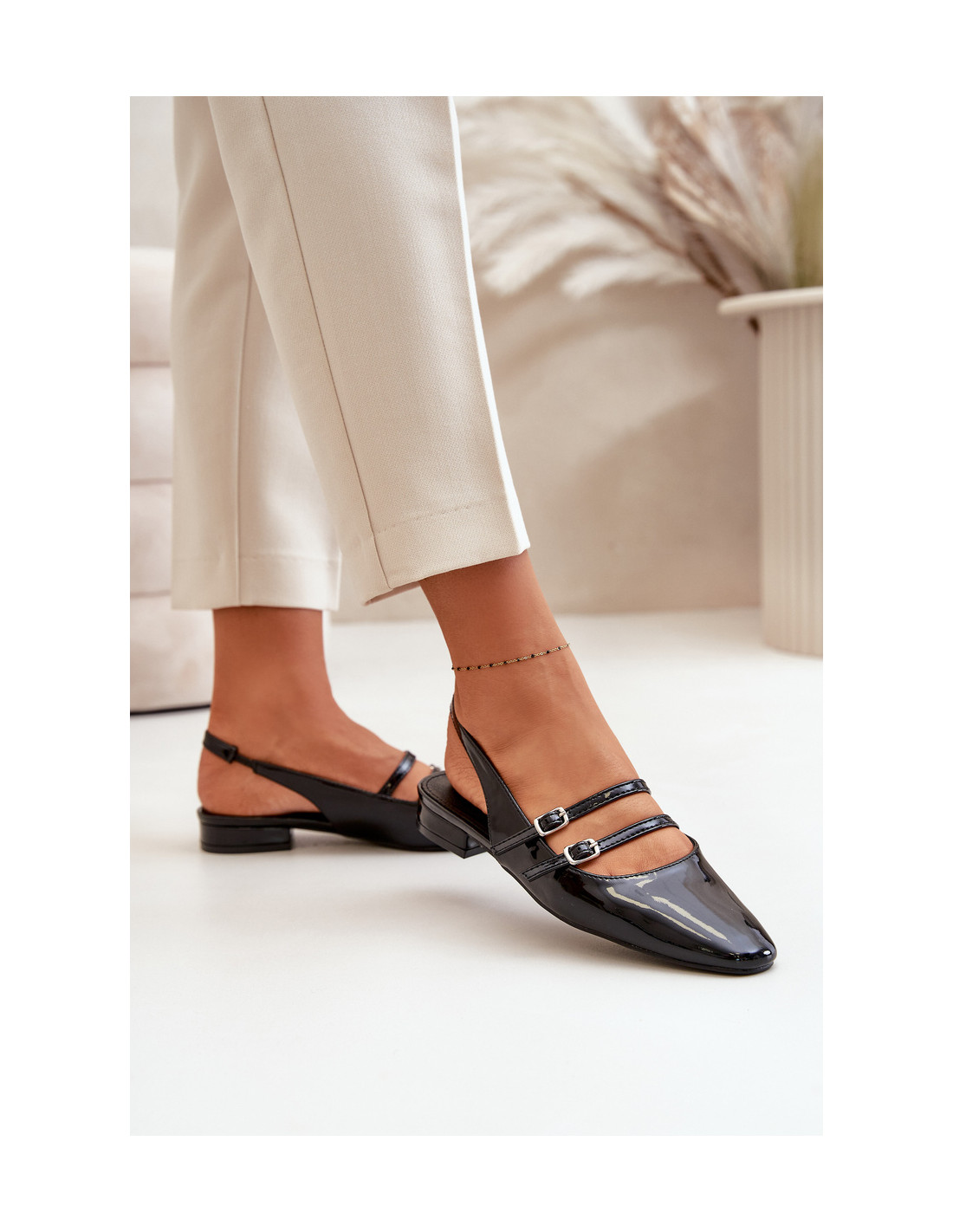 Moteriški balerinos batai iš eko odos. Nustatykite ant žemo kulno. Migdoliniai pirštai. Atviras kulnas. Minkštas vidpadis užtikrina komfortą kiekvienoje spūstyje. Priekyje yra du ploni, reguliuojami dirželiai, kurie padidins pėdos stabilizavimą. Itin madingas dizainas, kuris turėtų būti jūsų garderobe! Renkantis dydį, vadovaukitės dydžių lentele.