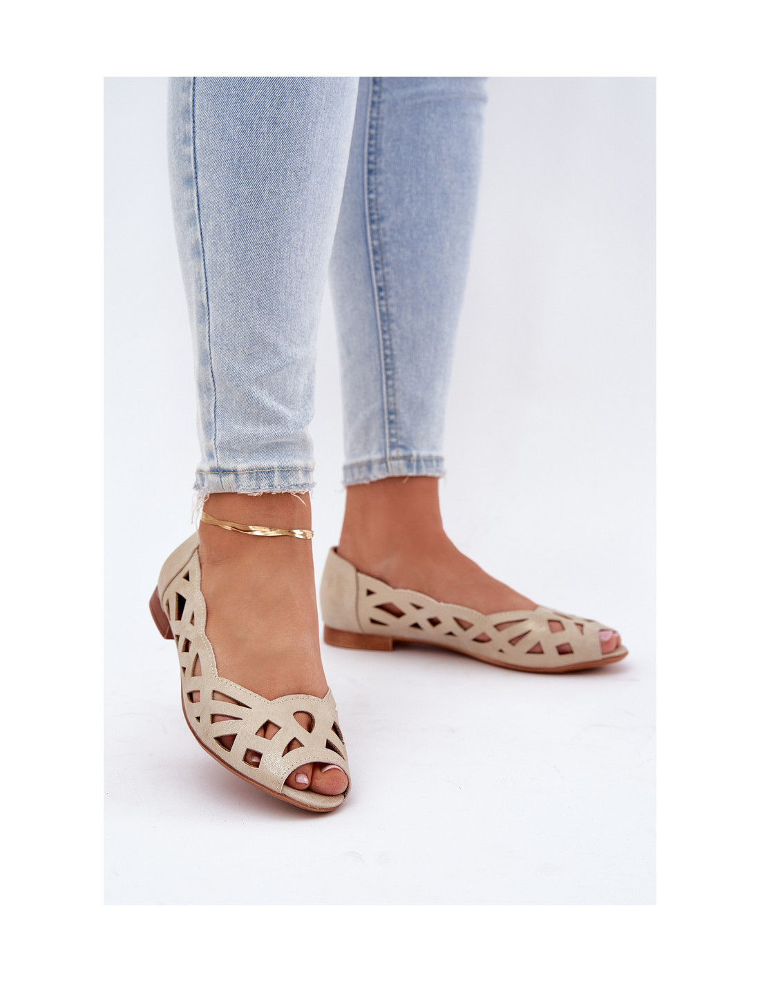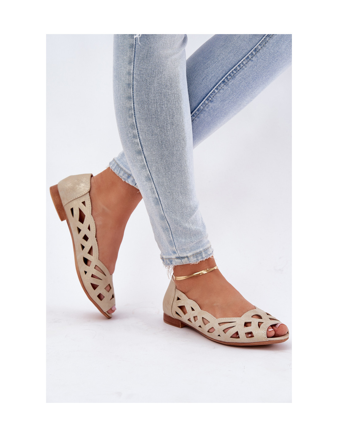 Jezzi prekės ženklo balerinos yra elegantiškas ir patogus pasirinkimas šiltoms dienoms. Pagaminta iš eko odos. Ažūrinis viršus suteikia jiems lengvumo ir šiuolaikiško charakterio. Dėl atviros nosies batai puikiai tinka pavasariui ir vasarai. Sutvirtintas kulnas suteikia stabilumo ir komforto, o odinis vidpadis – komfortą visą dieną. Plokščias kulnas užtikrina kasdienį komfortą, todėl šie baleto bateliai yra puikus pasirinkimas kasdieniam stiliui. Renkantis dydį, vadovaukitės dydžių lentele.