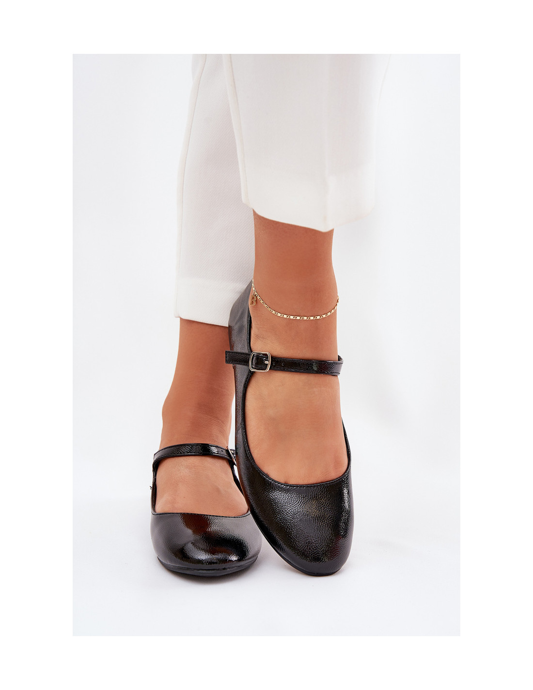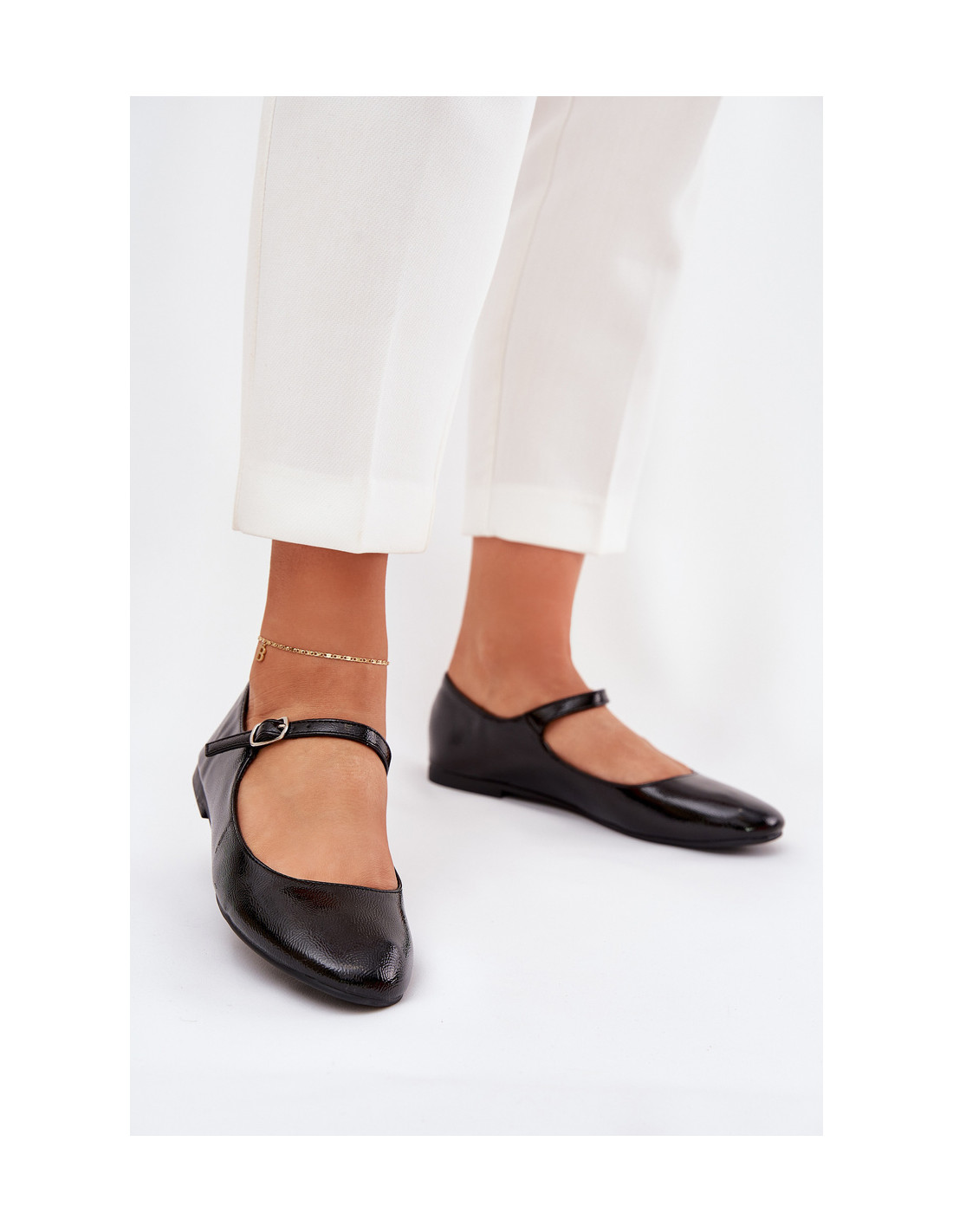 Moteriškos balerinos iš lakinės eko odos. Modelis turi apvalius pirštus. Vidurio pėdos dirželis, užsegamas sagtimi, suteikia elegancijos ir puikiai priglunda prie pėdos. Šios balerinos yra harmoningas madingo stiliaus ir komforto derinys, todėl puikiai tinka įvairioms progoms. Renkantis dydį, vadovaukitės dydžių lentele.