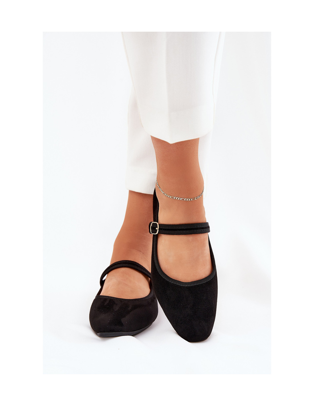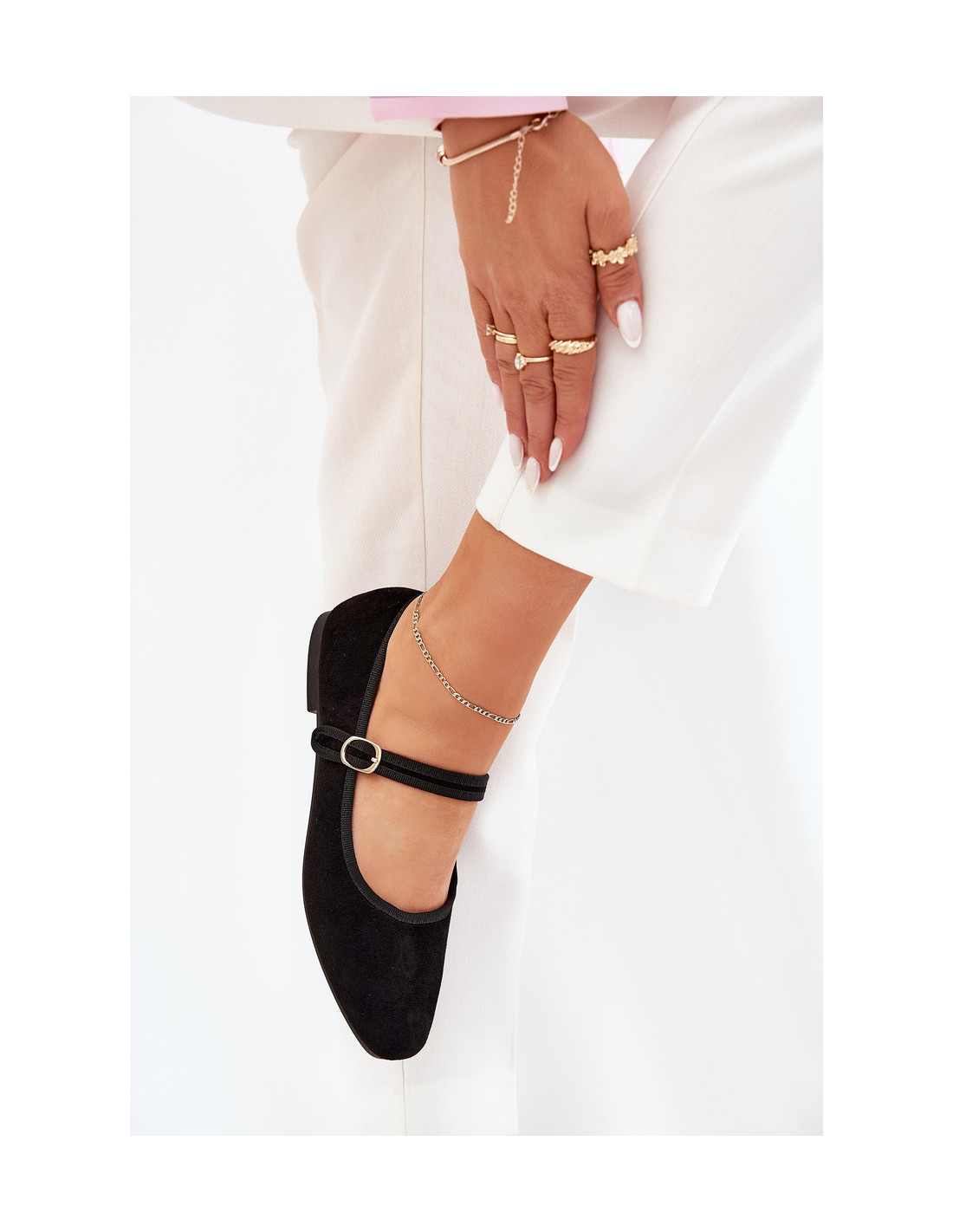 Moteriškos balerinos iš ekologiškos zomšos. Modeliui būdingi suapvalinti pirštai ir ant pėdos vidurio uždėtas dirželis, užsegamas sagtimi, kas garantuoja tobulą prigludimą prie pėdos. Šios balerinos puikiai tiks įvairioms progoms. Renkantis dydį, vadovaukitės dydžių lentele.