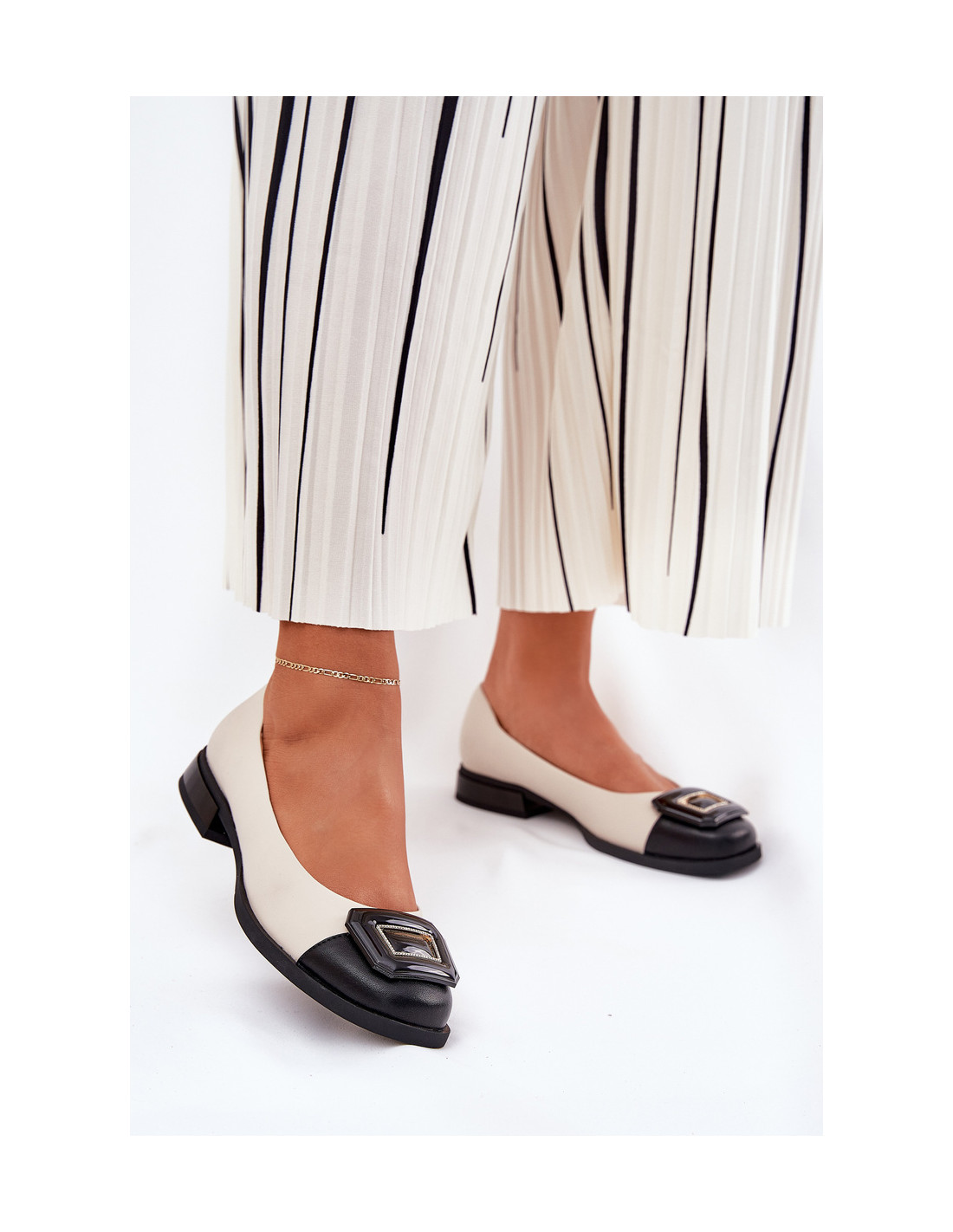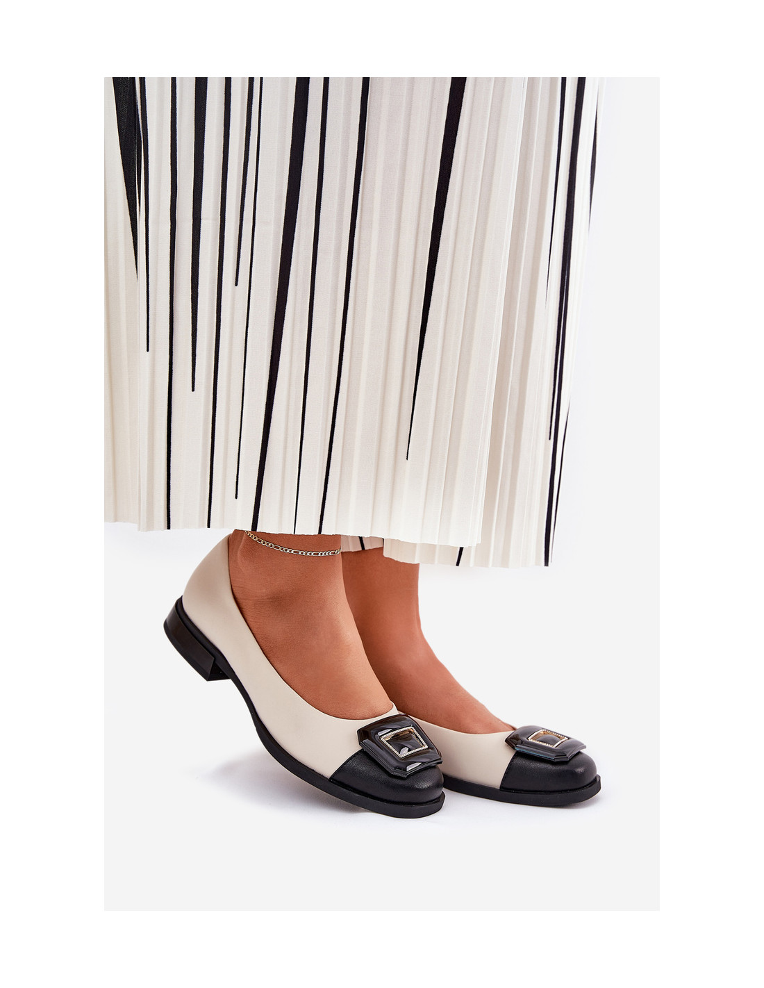 Elegantiškos moteriškos balerinos iš natūralios odos. Priekyje puošmena, kuri suteikia batams unikalumo. Ant plokščio kulno jie suteikia komfortą visą dieną, o suapvalinti pirštai garantuoja komfortą. Odinis vidpadis užtikrina tinkamą amortizaciją ir patogumą dėvint. Šios balerinos bus puikus pasirinkimas prie elegantiško ir kasdieninio stiliaus, derinančios paprastumą su elegancija. Renkantis dydį, vadovaukitės dydžių lentele.