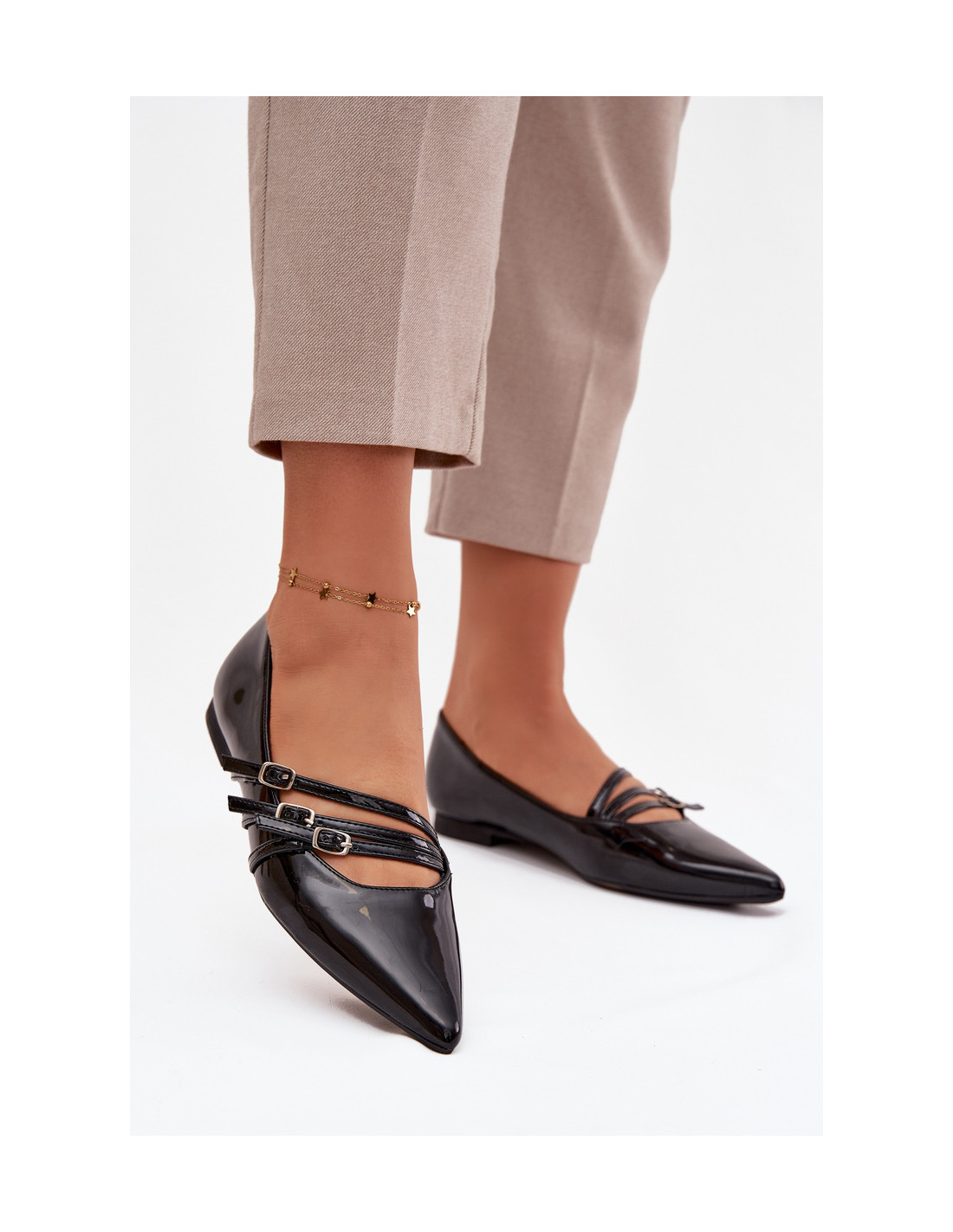 Stilingi baleto bateliai iš lakuotos odos. Šie bateliai pasižymi trimis plonomis juostelėmis, kurios subtiliai puošia pėdą ir užtikrina tinkamą stabilumą. Smaili noselė vizualiai pailgina kojas, o plokščias kulnas užtikrina komfortą visą dieną. Šie baleto bateliai puikiai tinka tiek elegantiškai aprangai, tiek kasdienai, kai norite atrodyti moteriškai ir jaustis patogiai. Rinkdamiesi dydį, vadovaukitės dydžių lentele.