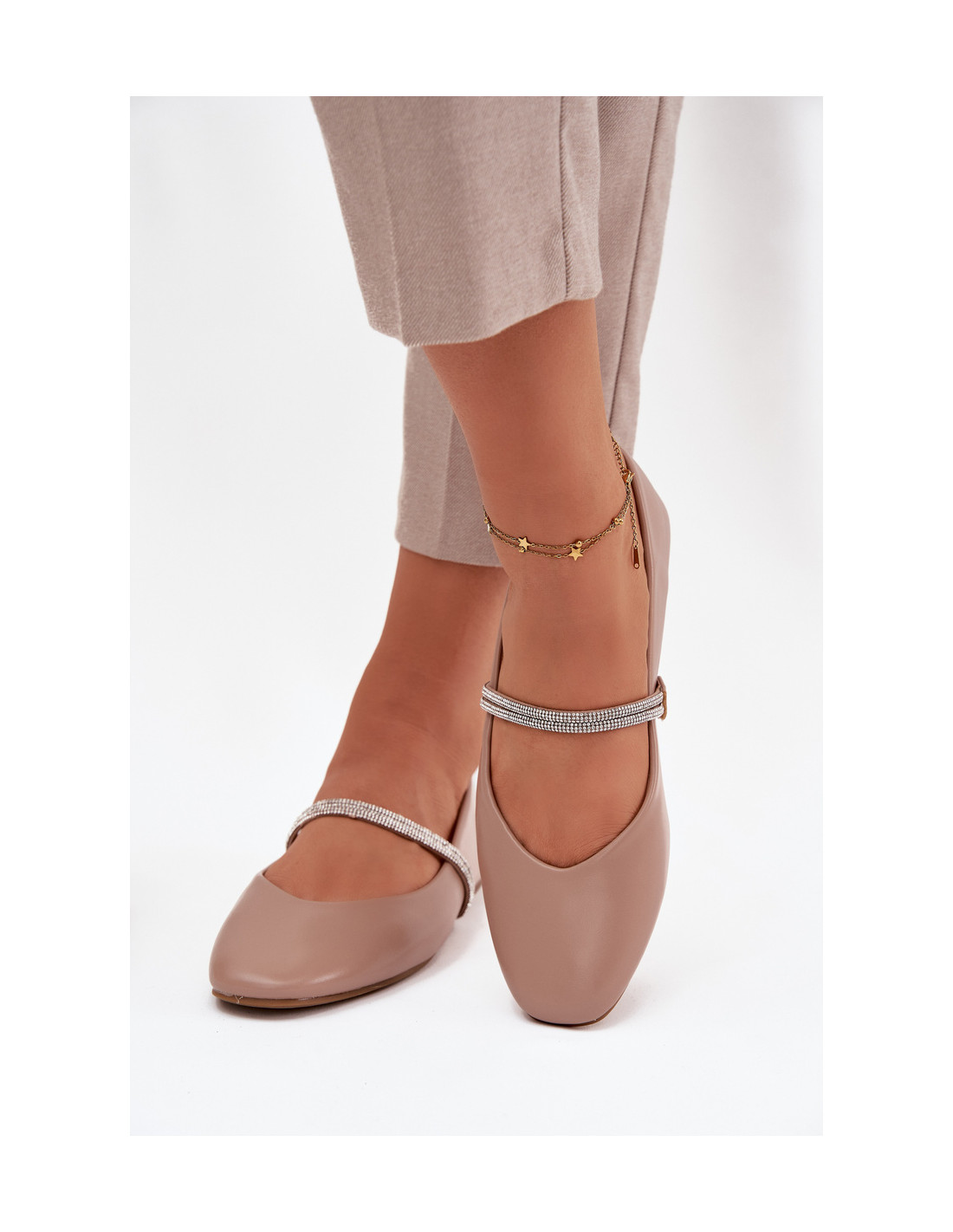 Ilirene moteriškos balerinos su blizgančiais dirželiais, tamsiai smėlio spalvos