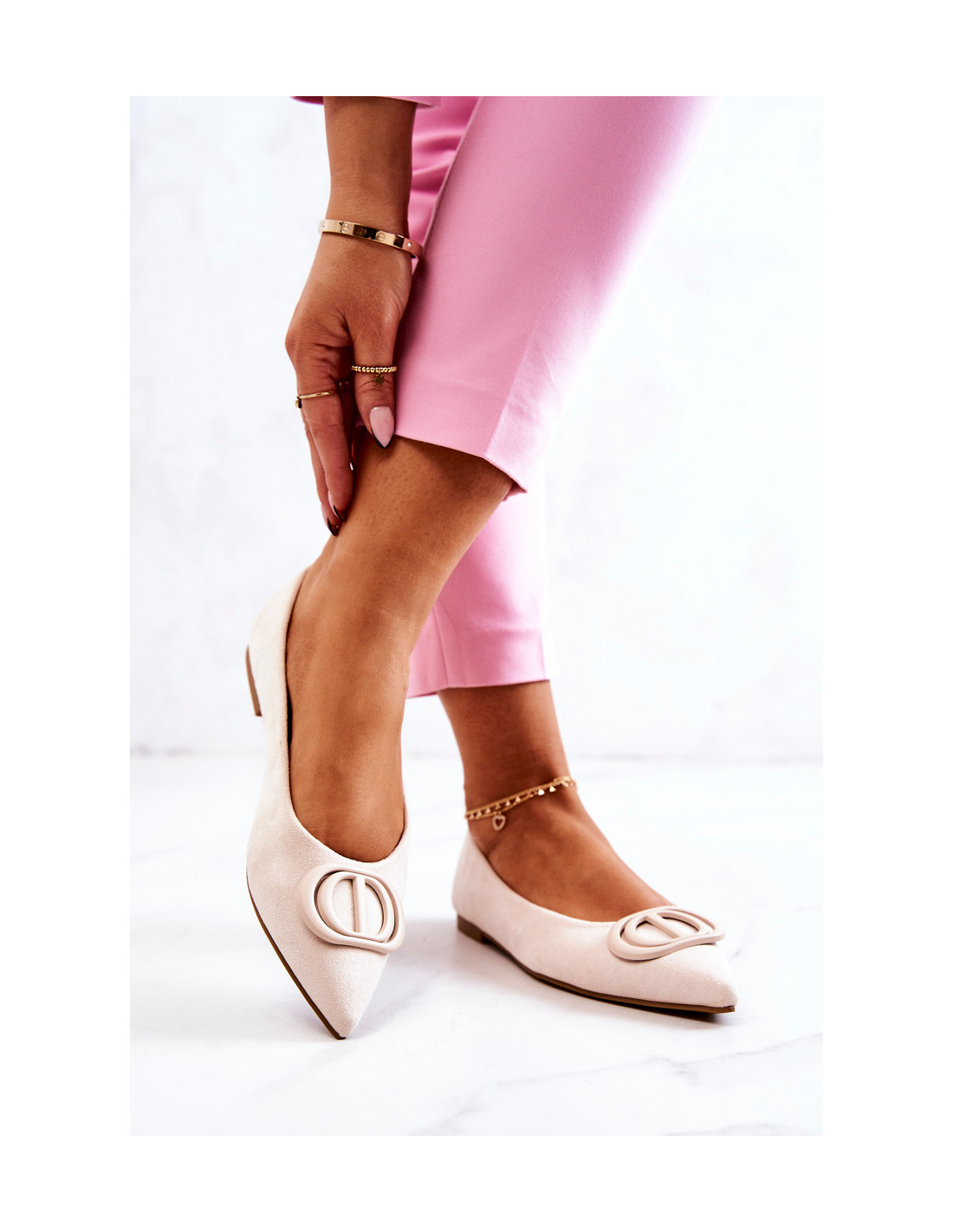 Zomšinės smailios balerinos šviesiai smėlio spalvos Neriso