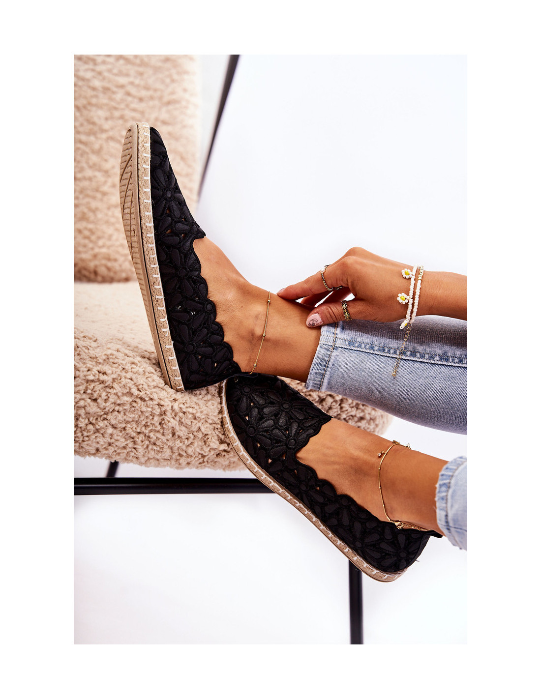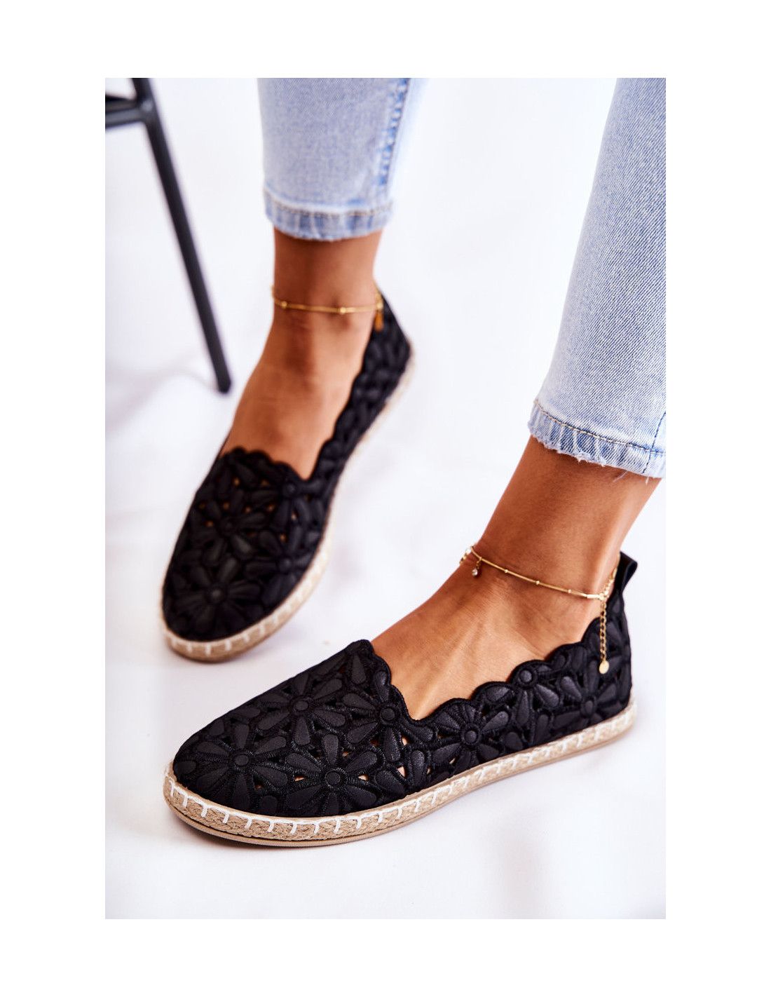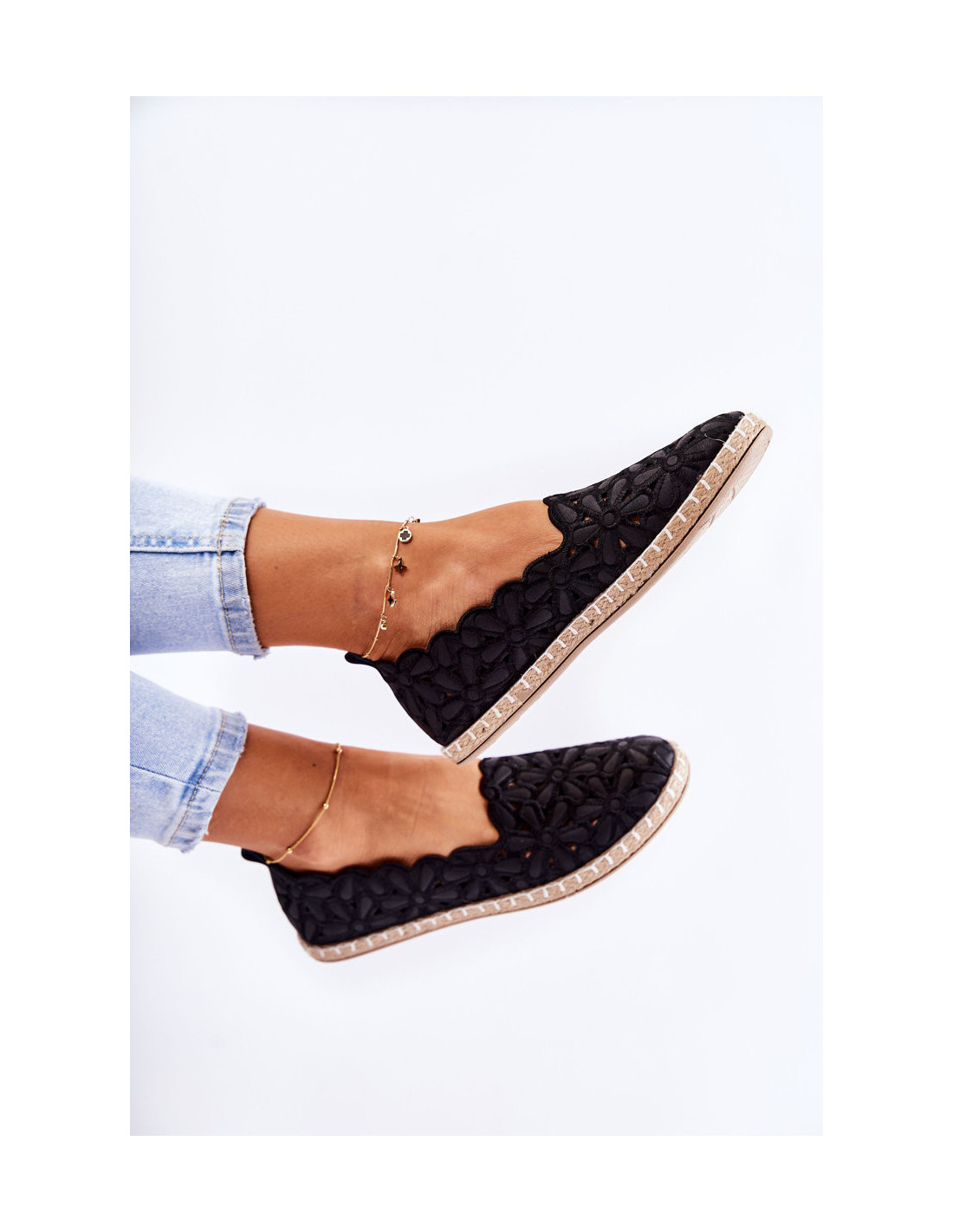 Moteriškos užsegamos balerinos su gėlėmis Black Vennice