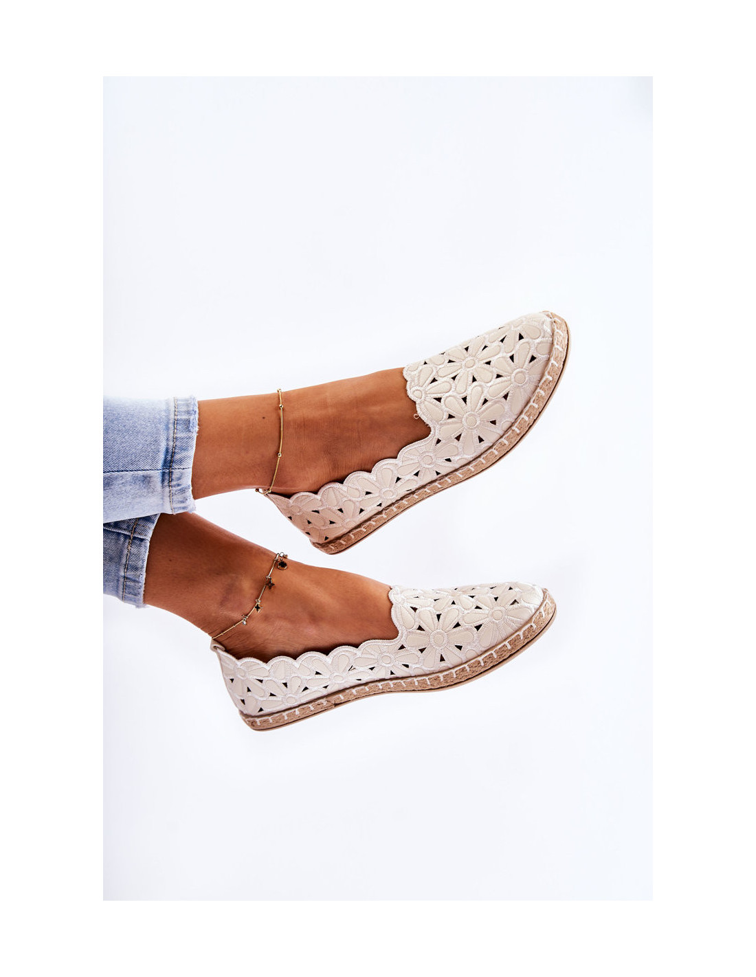 Moteriškos užsegamos balerinos su gėlėmis White Vennice