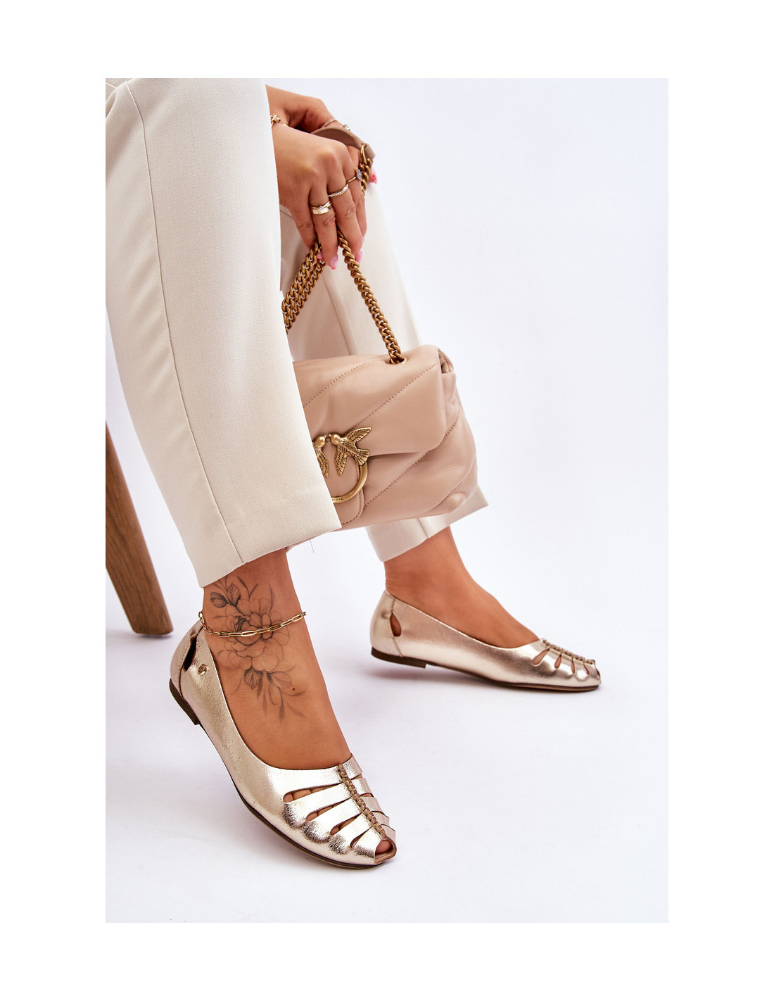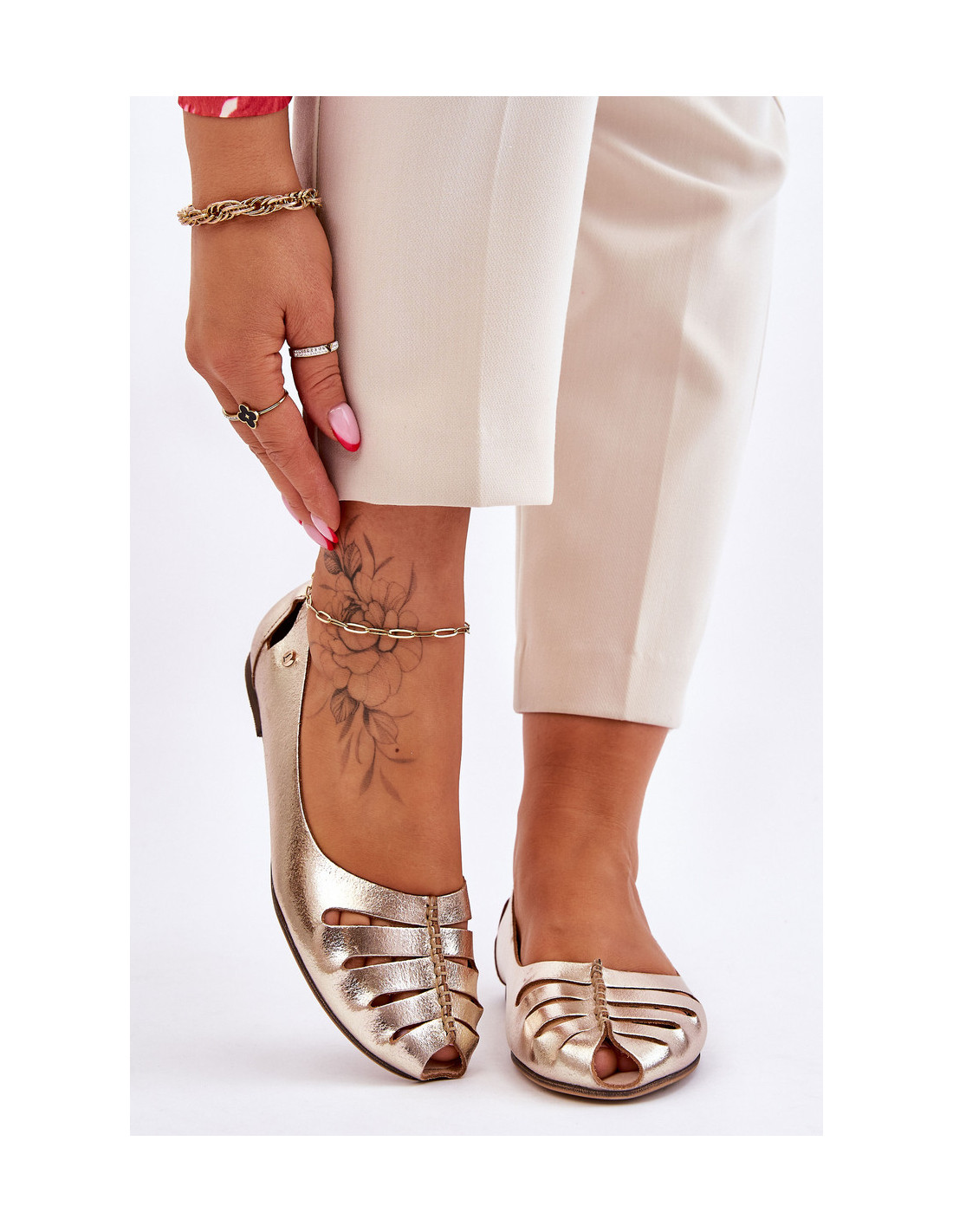 Klasikinės balerinos pagamintos iš natūralios odos. Be to, jie turi išpjovas viršutinės dalies priekyje ir gale. Patogumą užtikrins odinis, minkštas vidpadis. Plokščias kulnas užtikrins stabilumą kiekviename žingsnyje. Jie puikiai tinka tiek elegantiškam, tiek kasdieniniam stiliui. Balerinos taip pat turi standintą kulnų skaitiklį. Rinkdamiesi dydį, vadovaukitės dydžių lentele.