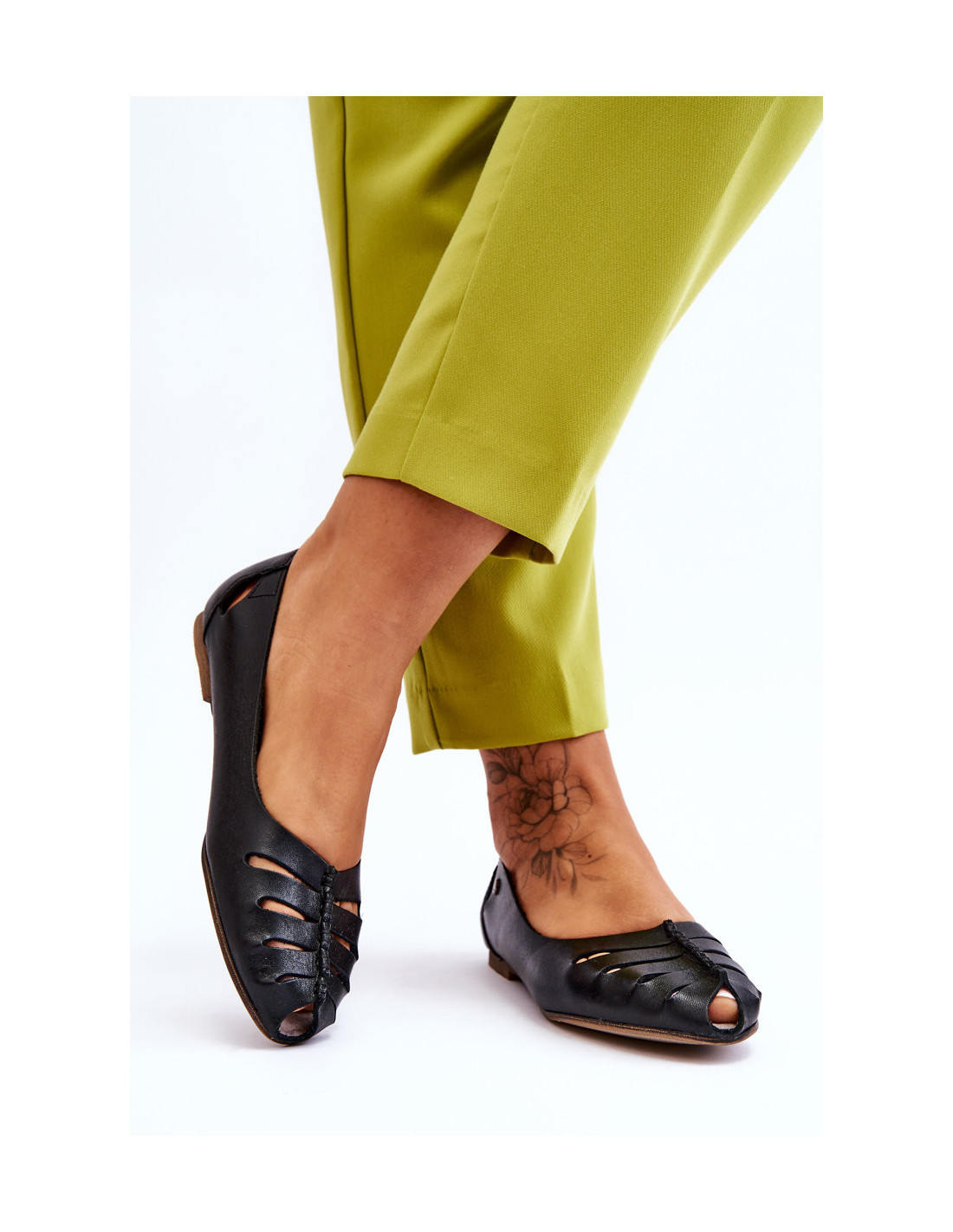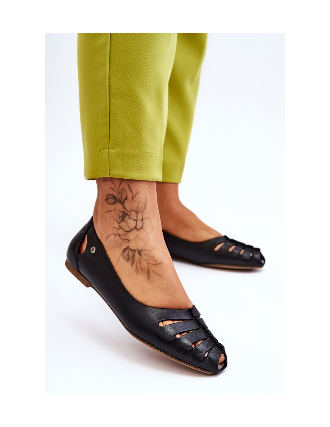 Klasikinės balerinos pagamintos iš natūralios odos. Be to, jie turi išpjovas viršutinės dalies priekyje ir gale. Patogumą užtikrins odinis, minkštas vidpadis. Plokščias kulnas užtikrins stabilumą kiekviename žingsnyje. Jie puikiai tinka tiek elegantiškam, tiek kasdieniniam stiliui. Balerinos taip pat turi standintą kulnų skaitiklį. Rinkdamiesi dydį, vadovaukitės dydžių lentele.