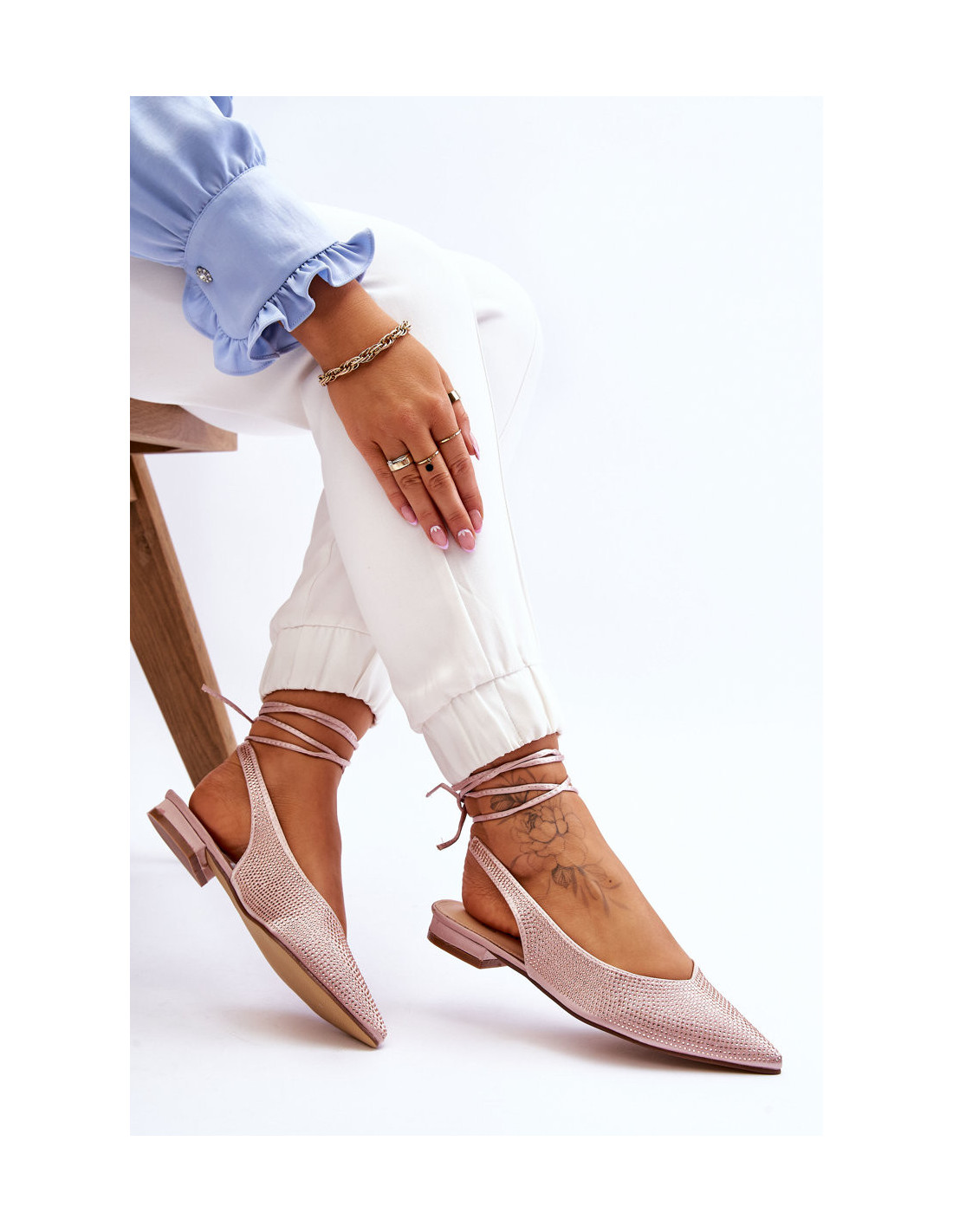Madingos balerinos atviru kulnu ir smailiu pirštu pagamintos iš tekstilės medžiagos. Viršutinė dalis buvo papildomai dekoruota purkštukais. Minkštas, ekologiškos odos vidpadis užtikrins komfortą naudojimo metu. Balerinos turi plokščią kulną ir kaklaraištį aplink blauzdą. Puikus modelis šiltoms dienoms! Rinkdamiesi dydį, žiūrėkite dydžių lentelę.