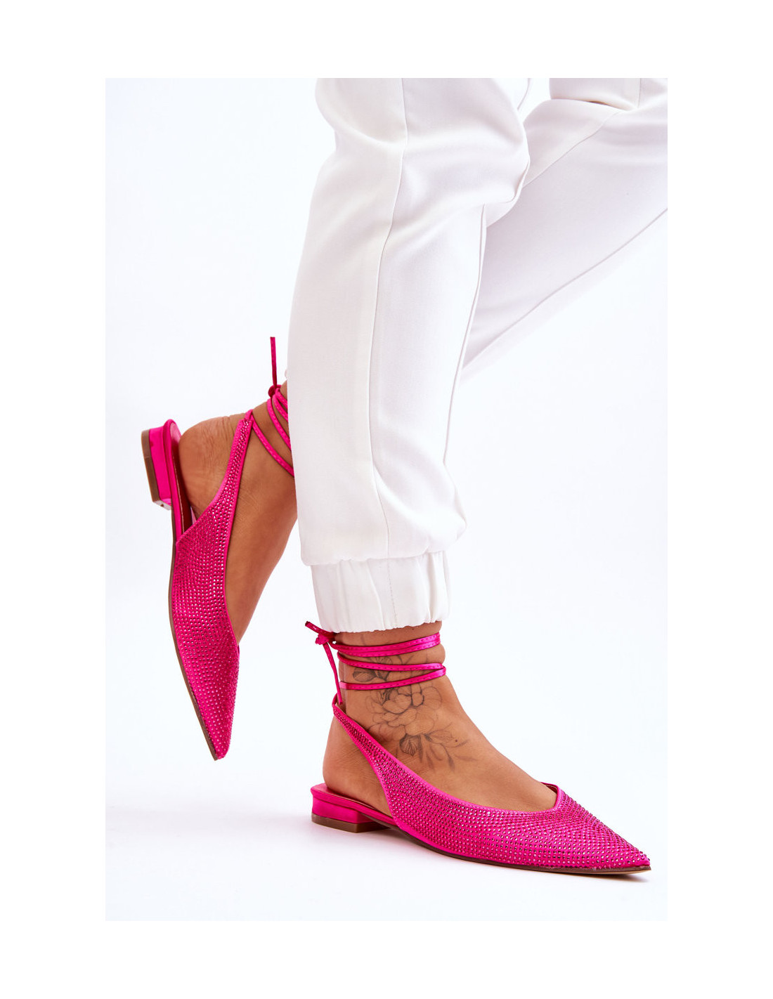 Madingos balerinos atviru kulnu ir smailiu pirštu pagamintos iš tekstilės medžiagos. Viršutinė dalis buvo papildomai dekoruota purkštukais. Minkštas, ekologiškos odos vidpadis užtikrins komfortą naudojimo metu. Balerinos turi plokščią kulną ir kaklaraištį aplink blauzdą. Puikus modelis šiltoms dienoms! Rinkdamiesi dydį, žiūrėkite dydžių lentelę.