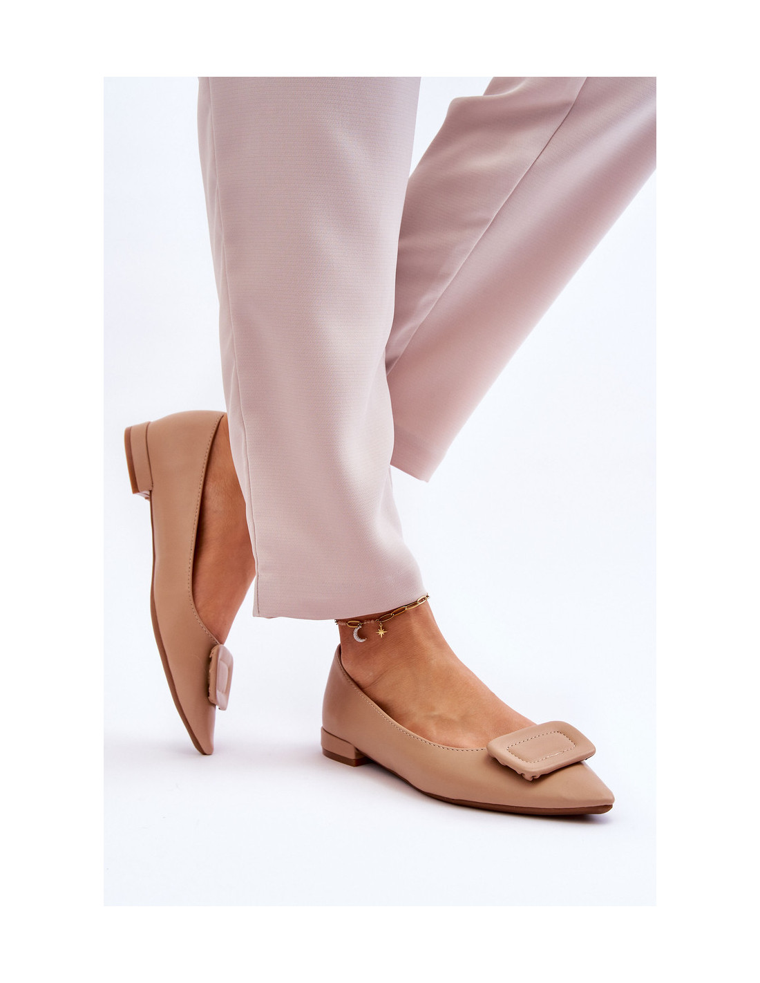 Klasikinės, moteriškos balerinos turi papuošimą priekyje. Jie pagaminti iš eko odos. Minkštas vidpadis užtikrins patogų avalynės naudojimą. Šie batai yra pastatyti ant plokščio kulno. Šis modelis turi smailią nosį, kuri optiškai lieknina kojas. Šias balerinas galite naudoti prie daugelio stilių su suknelėmis, sijonais ir kelnėmis. Rinkdamiesi dydį žiūrėkite dydžių lentelę.