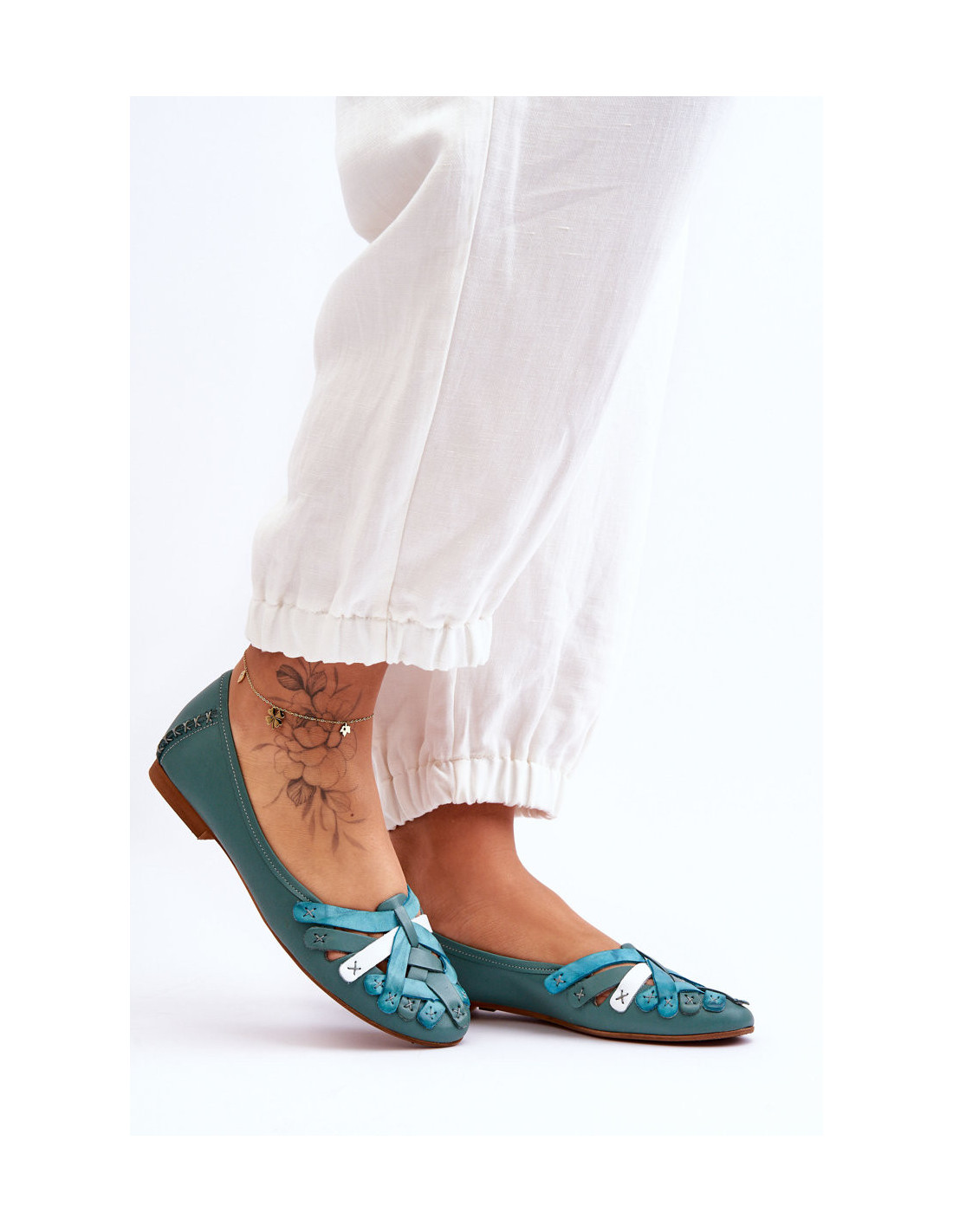 Klasikinės odinės moteriškos balerinos Maciejka 01358-36 Turquoise