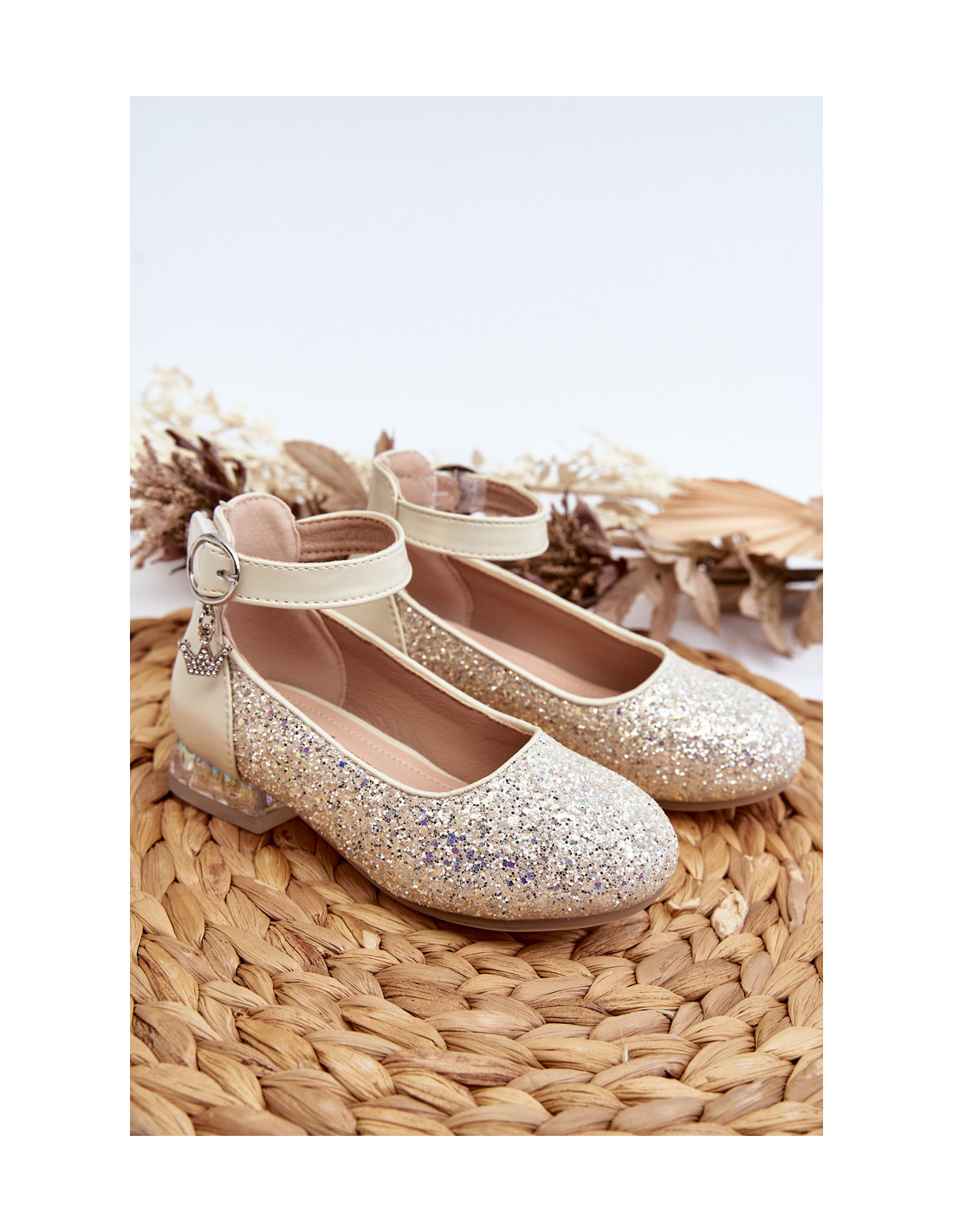 Vaikiški balerinų bateliai dekoruoti blizgučiais. Šis modelis turi Velcro užsegimą ir nedidelę sagtį su puošmena. Suapvalinti kojų pirštai. Batai buvo pastatyti ant plokščio kulno. Minkštas eko odos įdėklas užtikrina komfortą naudojimo metu. Puikiai tiks ypatingoms progoms Jūsų vaikui! Renkantis dydį, vadovaukitės dydžių lentele.