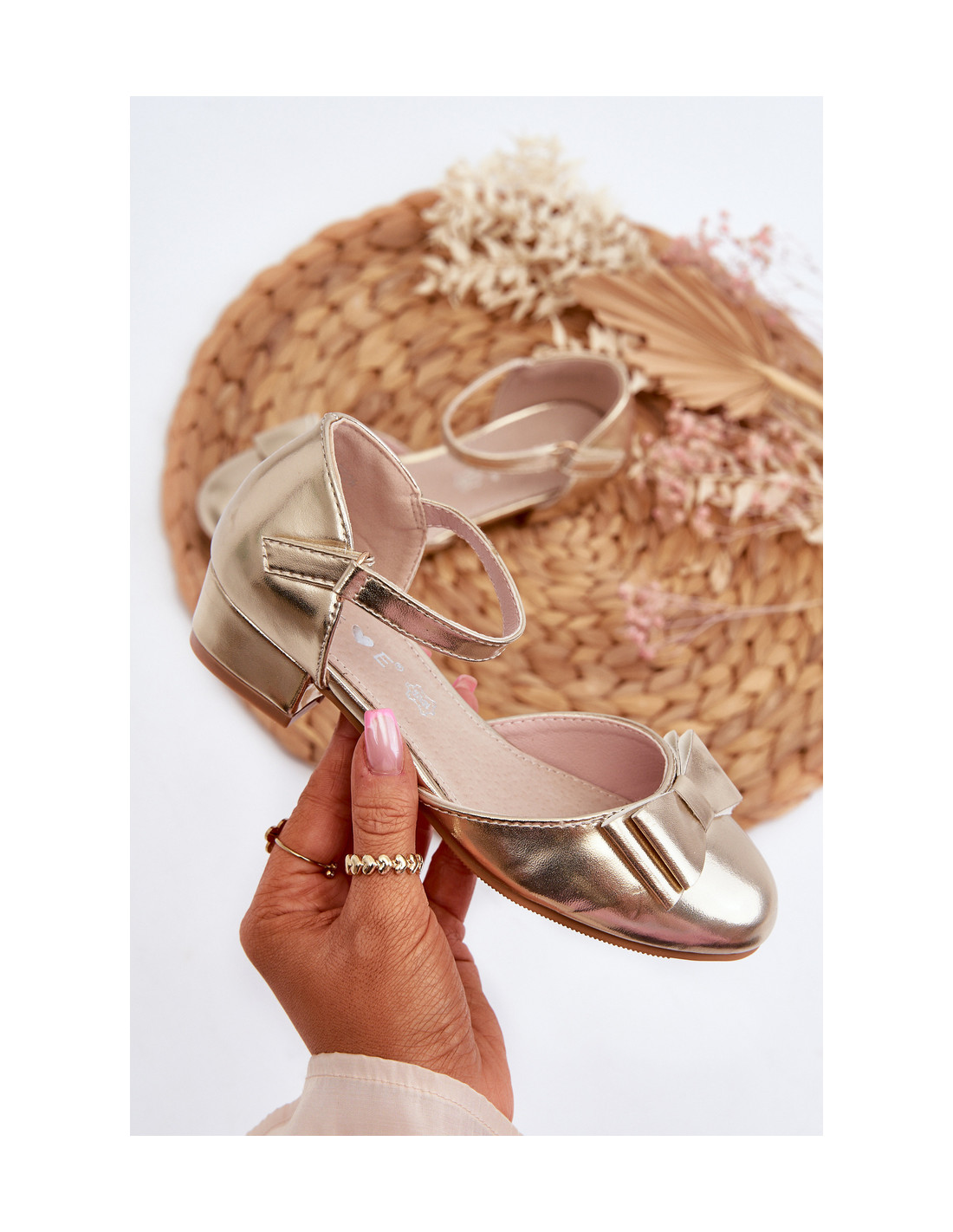 Žavingi vaikiški balerinos bateliai iš eko odos. Subtilus žemas kulnas ir dekoratyvinis lankelis priekyje suteikia žavesio ir elegancijos. Be to, standus kulnas garantuoja stabilumą ir atramą mažoms pėdutėms. Reguliuojamas dirželis su sagtimi leidžia lengvai priderinti batus pagal individualius vaiko poreikius. Jie puikiai tiks įvairioms progoms! Renkantis dydį, vadovaukitės dydžių lentele.
