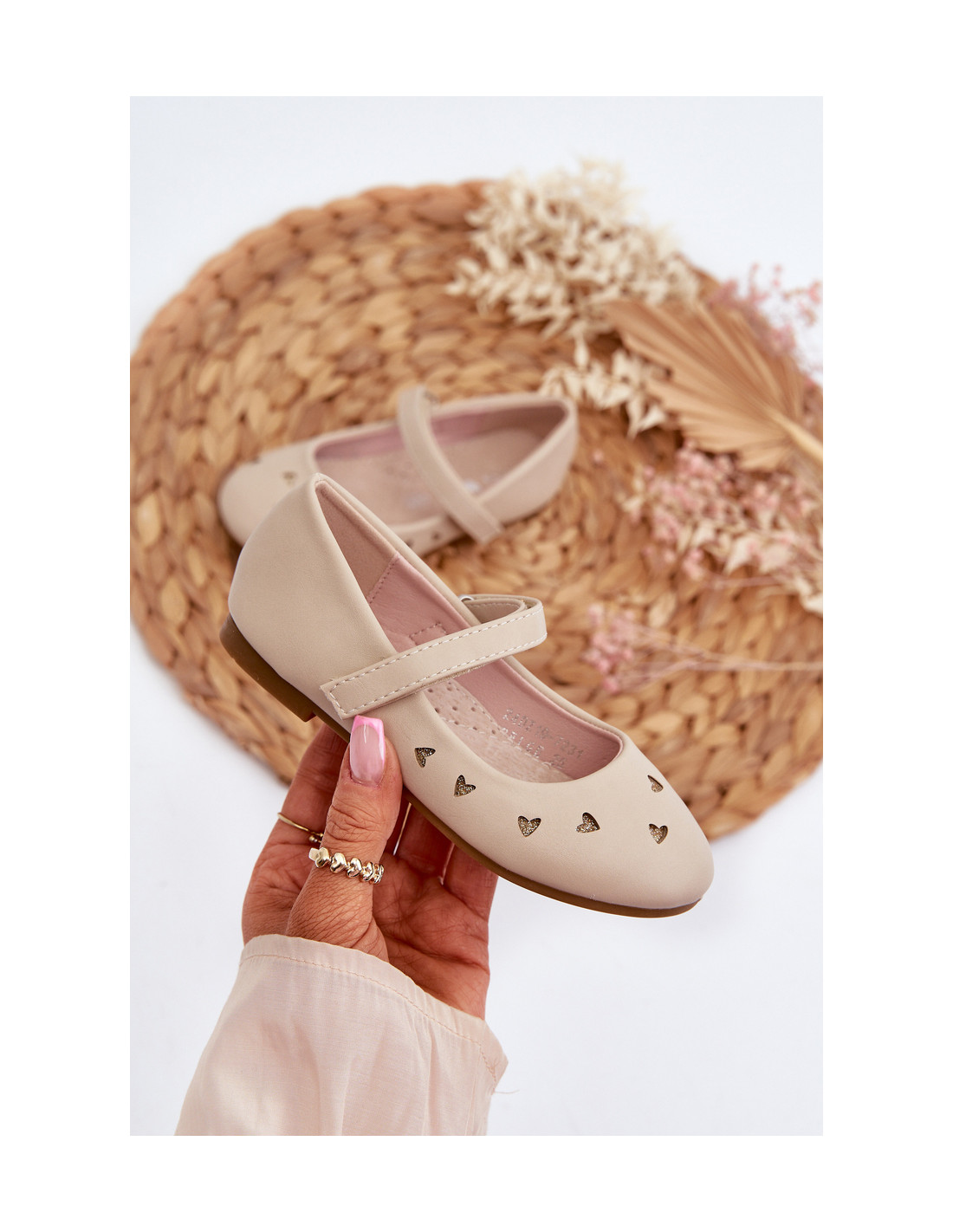 Vaikiški balerinos bateliai su širdelėmis, užsegami Velcro, smėlio spalvos Danaella