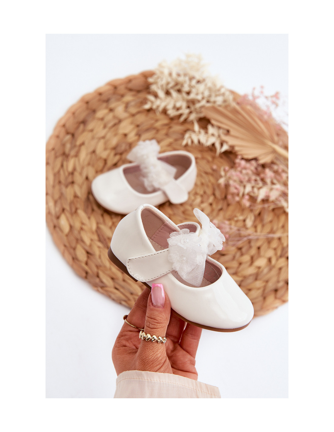 Vaikiški lakiniai balerinos bateliai su Velcro ir lankeliu, baltos spalvos Olessa