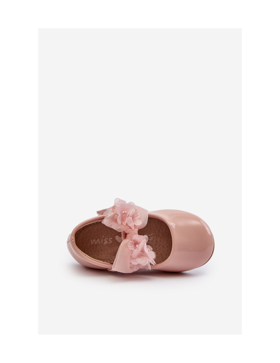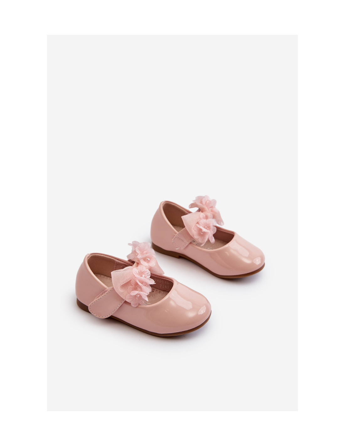 Vaikiški lakinės odos balerinos bateliai su Velcro ir lankeliu, rožinės spalvos Olessa