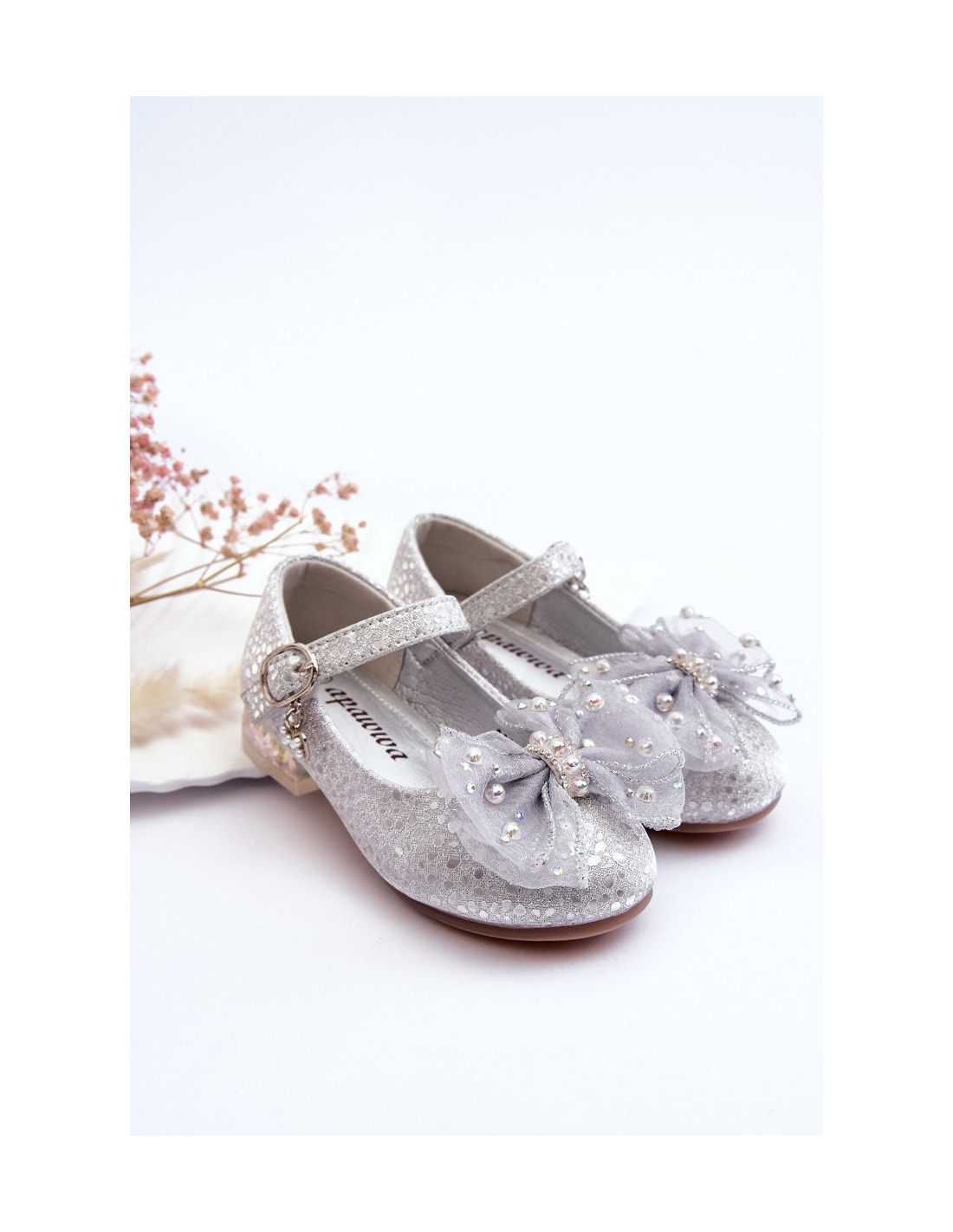 Vaikiškos balerinos su Velcro lankeliu Sidabrinės pilkos spalvos Nicola