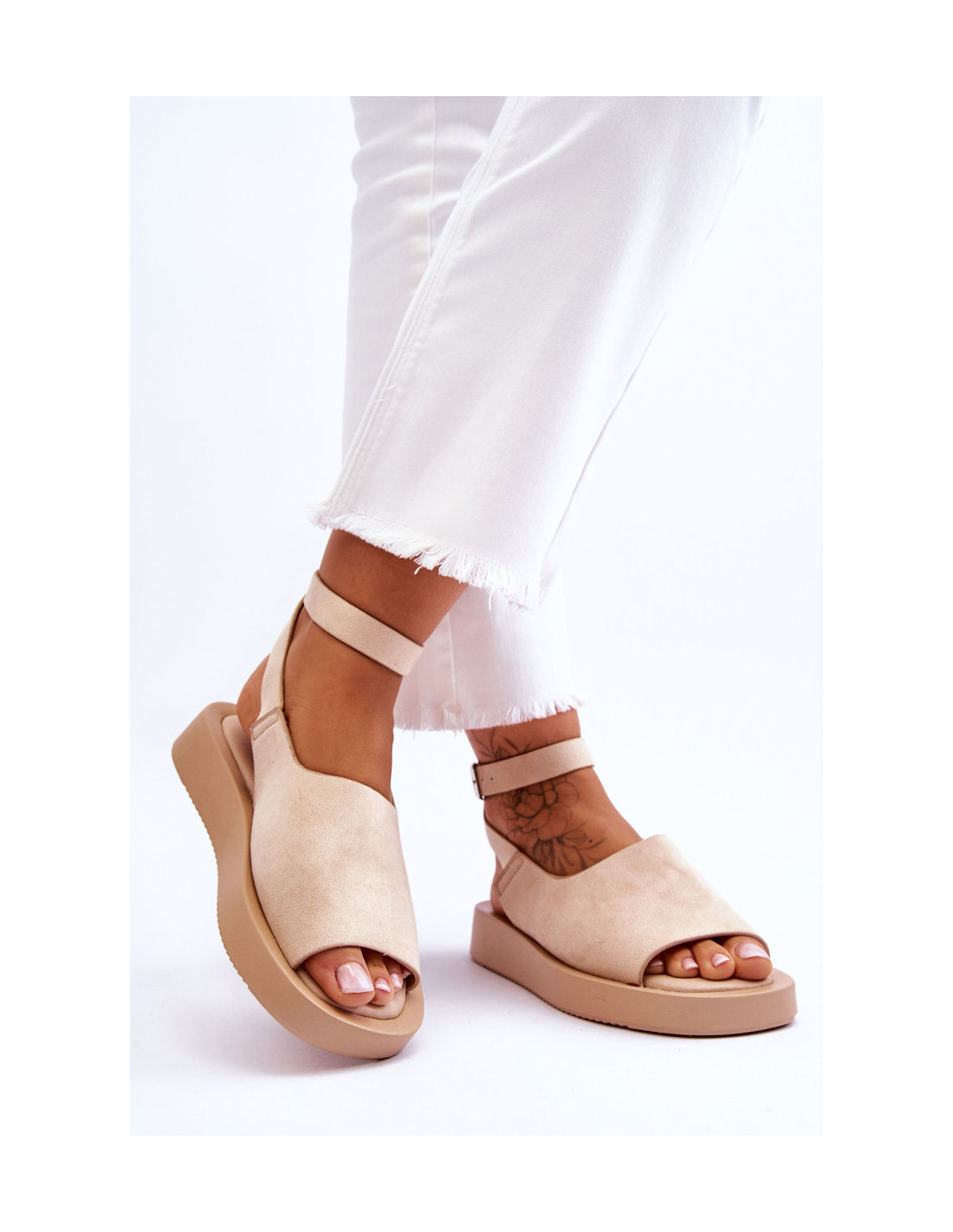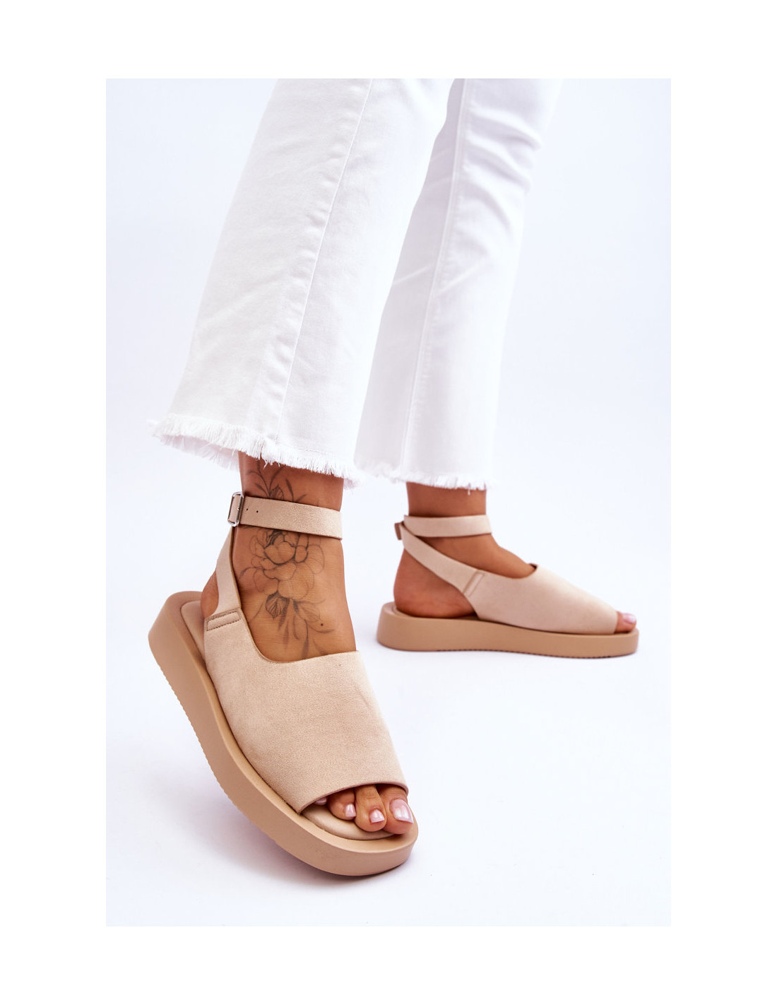 Unikalios moteriškos basutės su platforma. Šie batai pagaminti iš malonios liesti ekologiškos zomšos. Jie turi minkštą, ekologinės odos įdėklą. Sandalai aplink kulkšnį susegami reguliuojamu dirželiu su sagtimi. Šis neįprastas modelis tikrai praturtins jūsų vasaros garderobą! Renkantis dydį, vadovaukitės dydžių lentele.