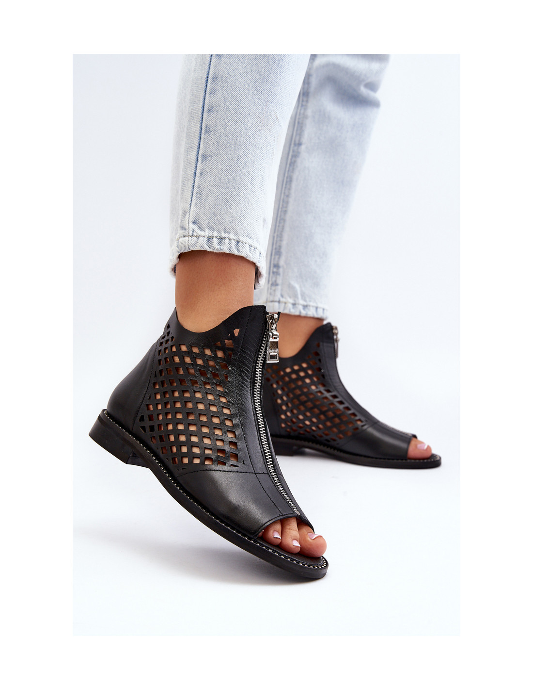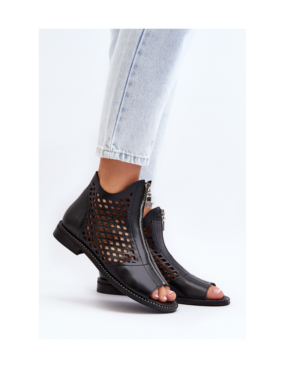 Zazoo 977/ L Odiniai ažūriniai sandalai su užtrauktuku Juodos spalvos