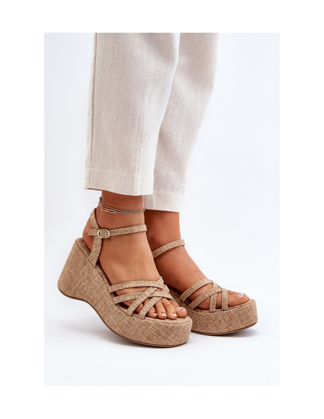 Smėlio spalvos platforma ir pleištiniai sandalai Oporia