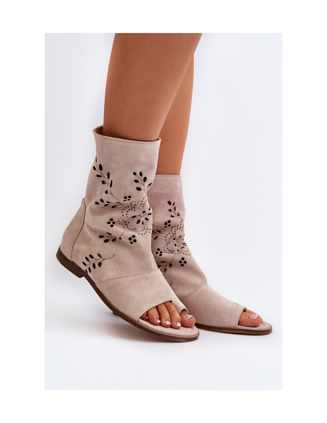 Šios unikalios plokščios basutės yra elegancijos ir komforto derinys. Pagaminti iš aukštos kokybės natūralios zomšos, užtikrina ilgaamžiškumą ir patogumą dėvėti. Jų viršutinė dalis, užsegama užtrauktuku, dekoruota ažūriniu raštu, suteikiančiu subtilumo ir stiliaus. Jie puikiai tinka tiek kasdieniam naudojimui, tiek ypatingoms progoms, pridedant jūsų stiliui nepakartojamo žavesio. Renkantis dydį, vadovaukitės dydžių lentele.