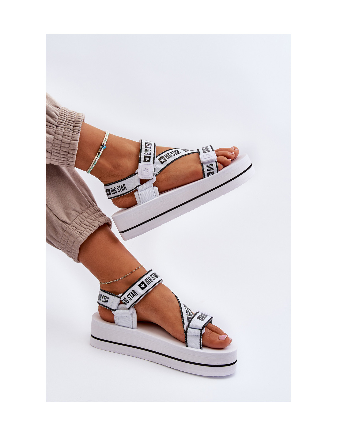 Moteriškos prekės ženklo Big Star sandalai yra puikus komforto ir stiliaus derinys. Užsegamos Velcro, užtikrina lengvą prisitaikymą prie pėdos. Montuojamas ant platformos. Puikiai tinkantys vasaros dienoms, šios basutės puikiai tiks tiek paplūdimyje, tiek vaikščiojant po miestą ir suteikia lengvumo bet kokiam vasaros stiliui! Renkantis dydį, vadovaukitės dydžių lentele.