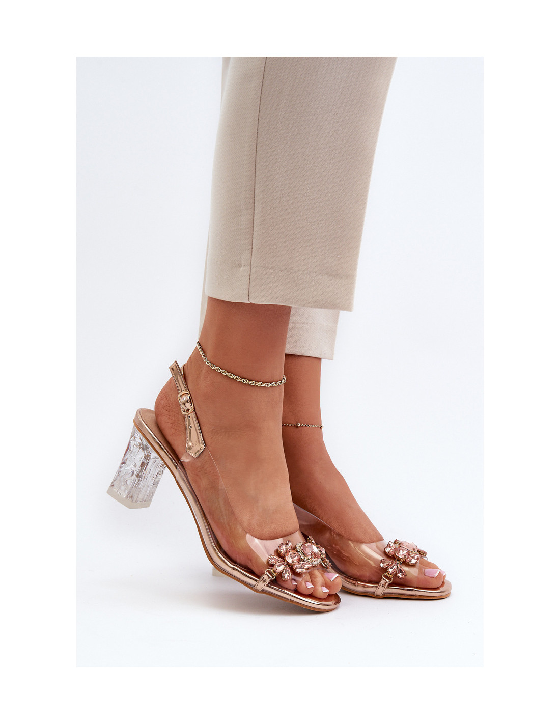 Elegantiški moteriški sandalai permatomu viršumi. Tvirtinama ant stabilaus stulpo. Dekoruoti subtiliomis detalėmis, jie suteikia charakterio bet kokiam stiliui. Odinis vidpadis užtikrina komfortą. Šis modelis yra puikus pasirinkimas įvairioms progoms! Renkantis dydį, vadovaukitės žemiau esančia dydžių lentele.